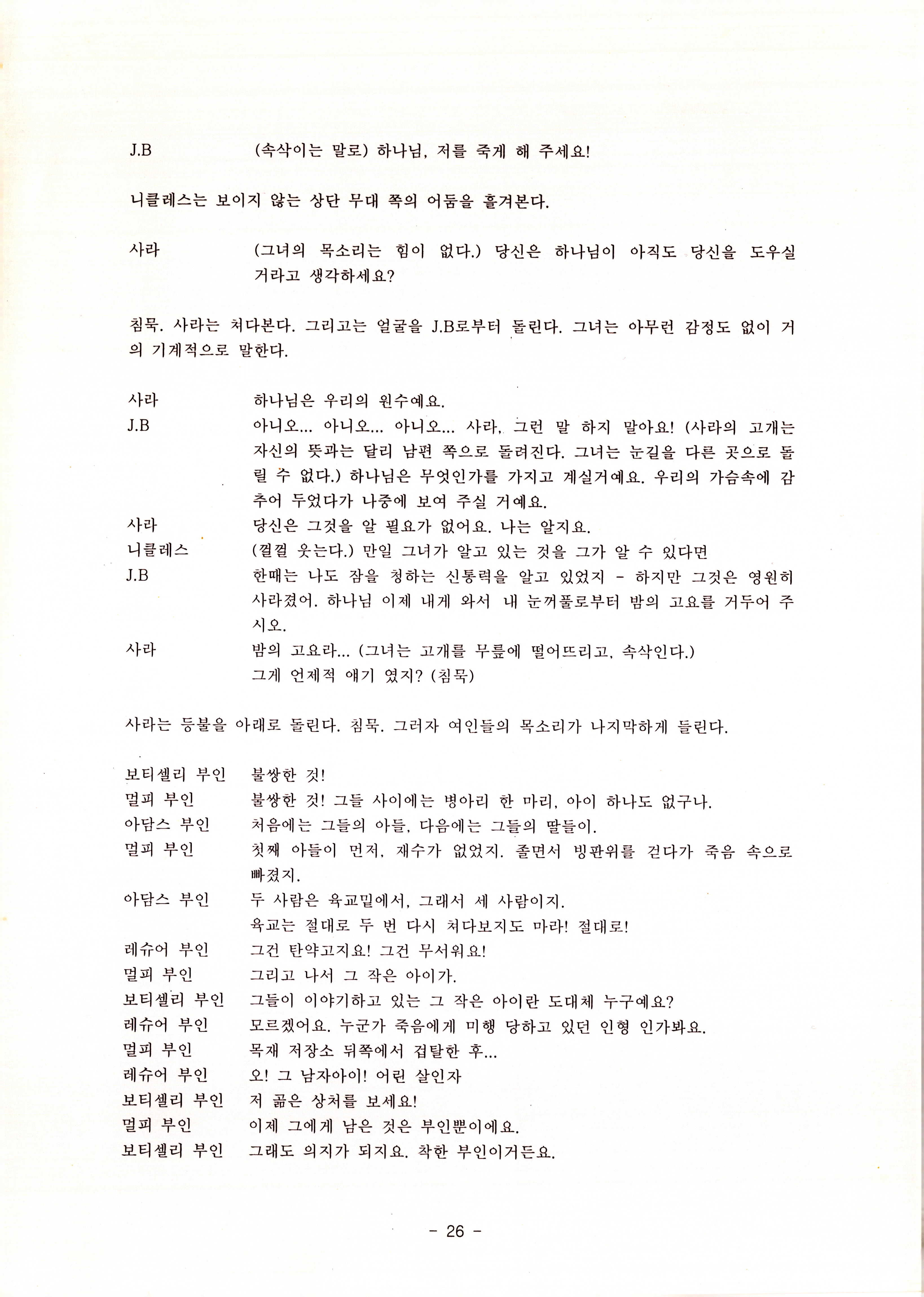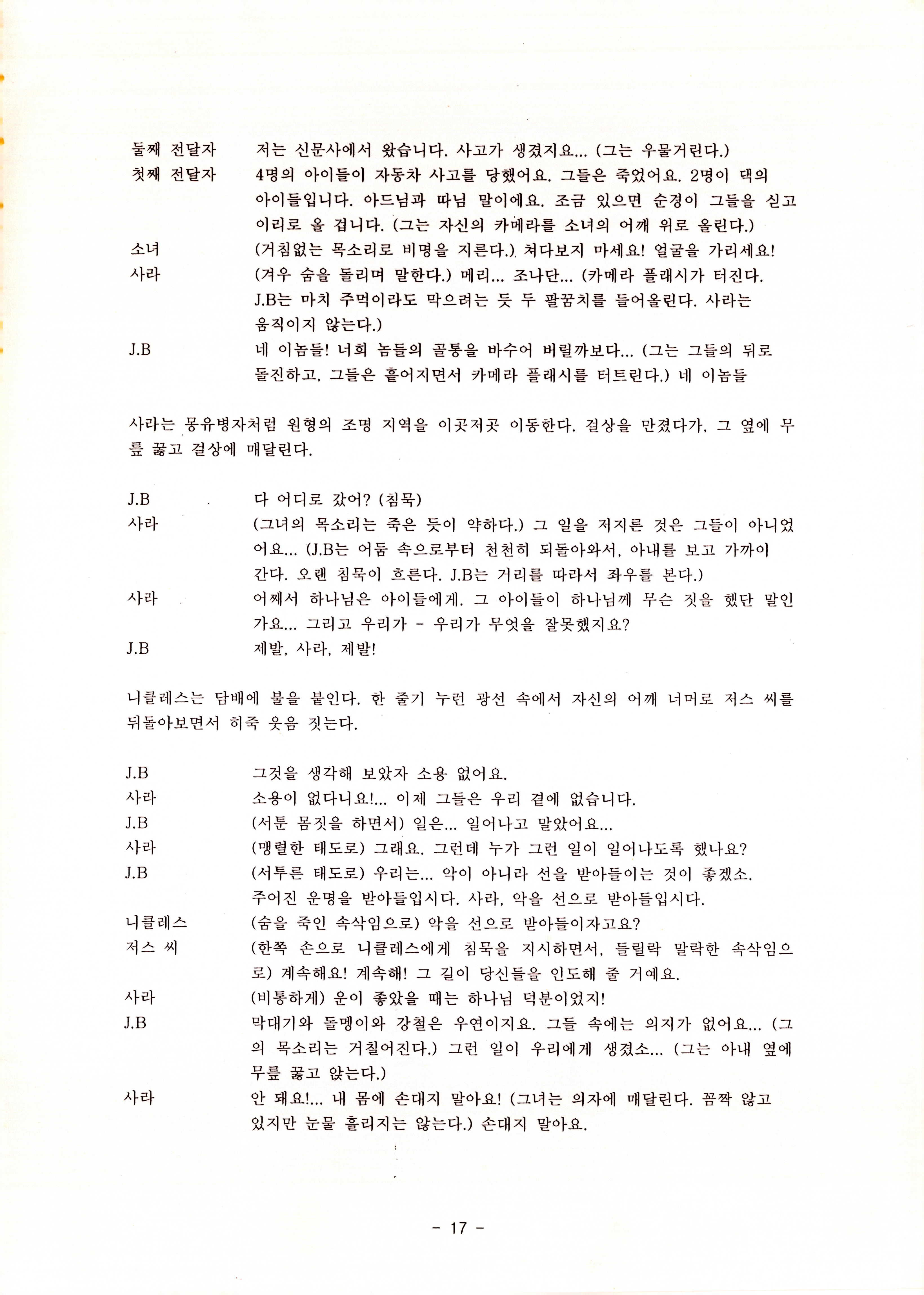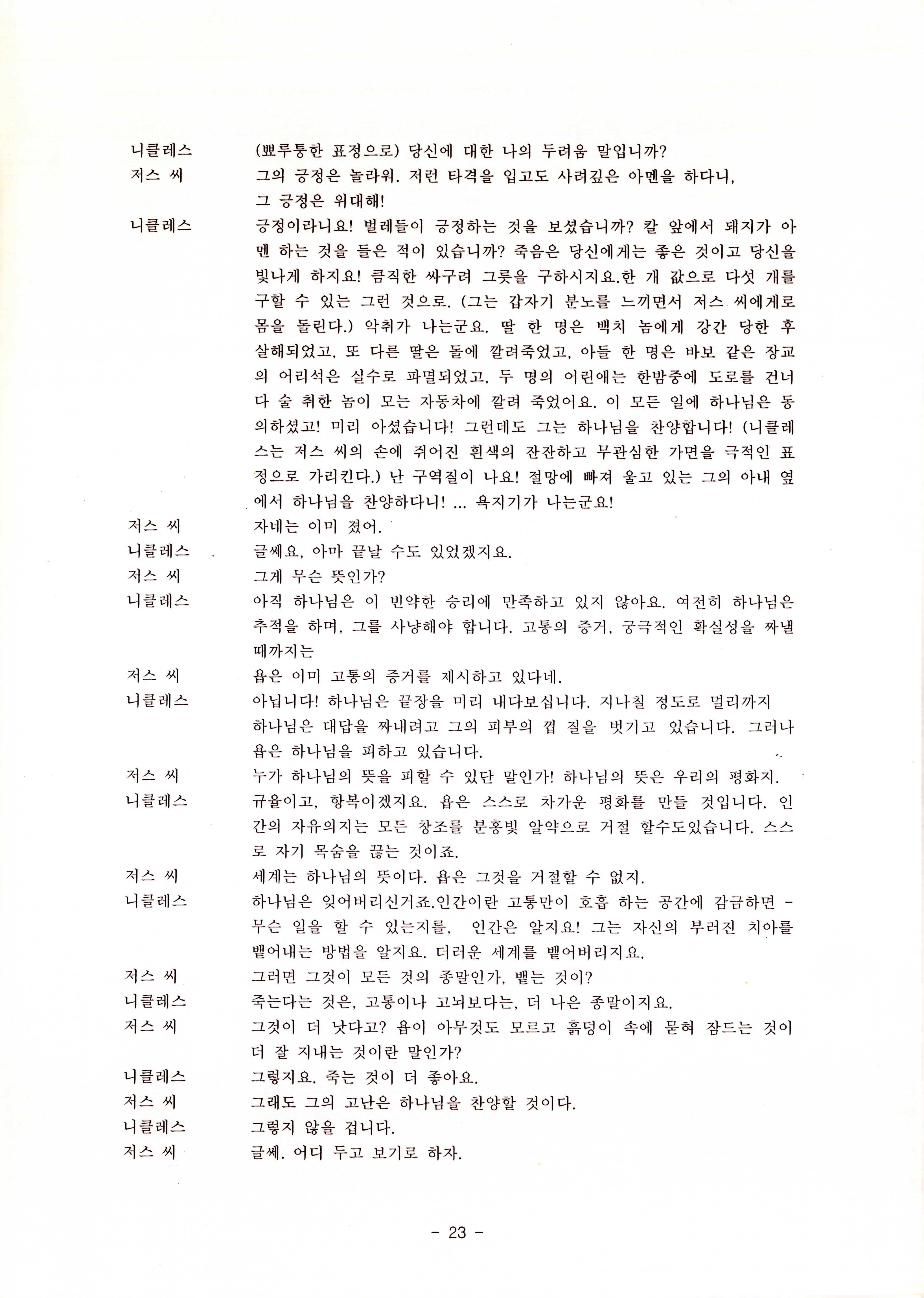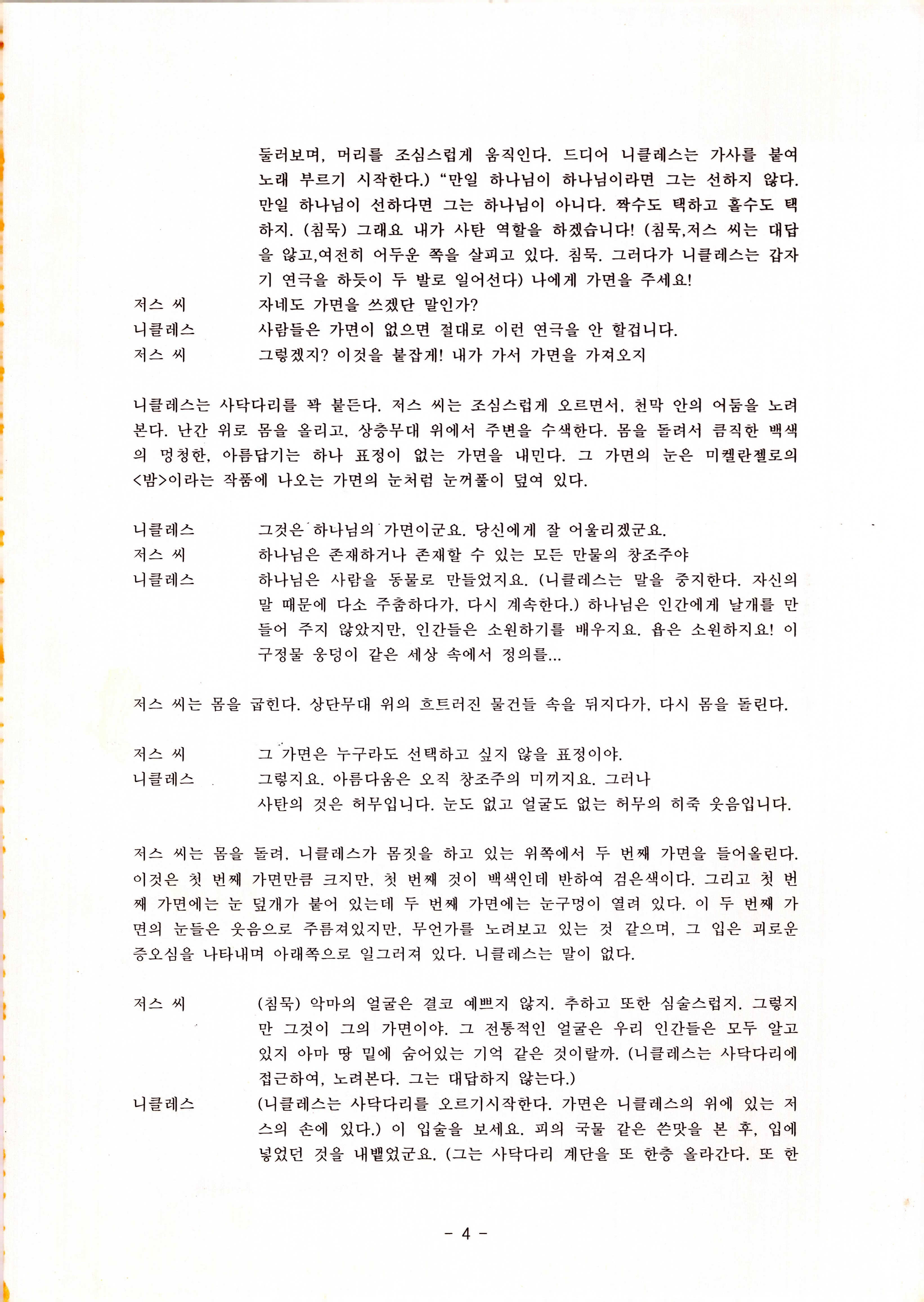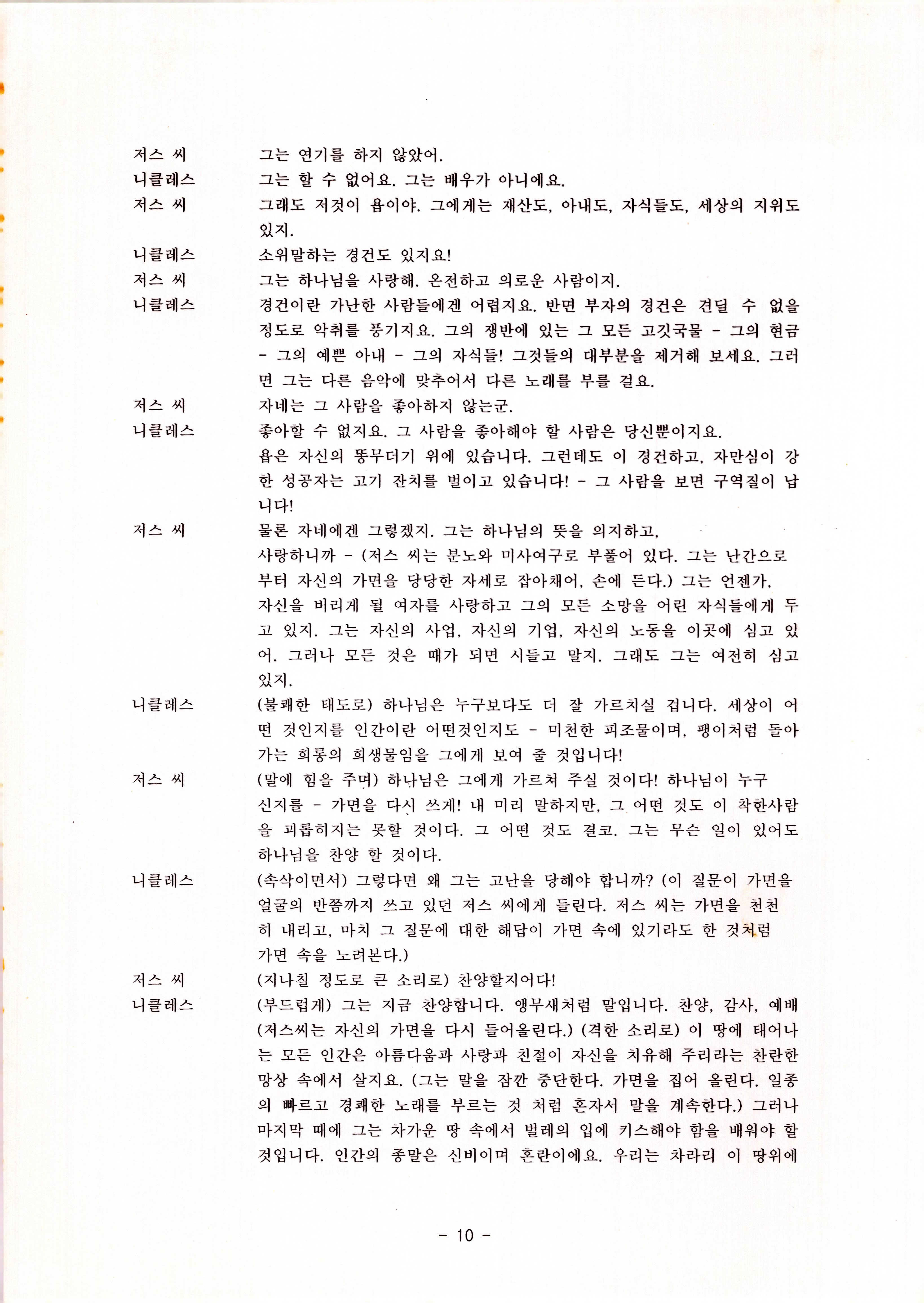 2010년 9월의 '욥記(원작: 제이비(J.B))' 대본집이다. 원작자 아치볼드 머클리시 연극으로 19그리고80, 위트에 이은 부두연극단의 인간의 고난과 복음에 관한 3번째 이야기 욥記 시나리오가 기술되어 있다.
