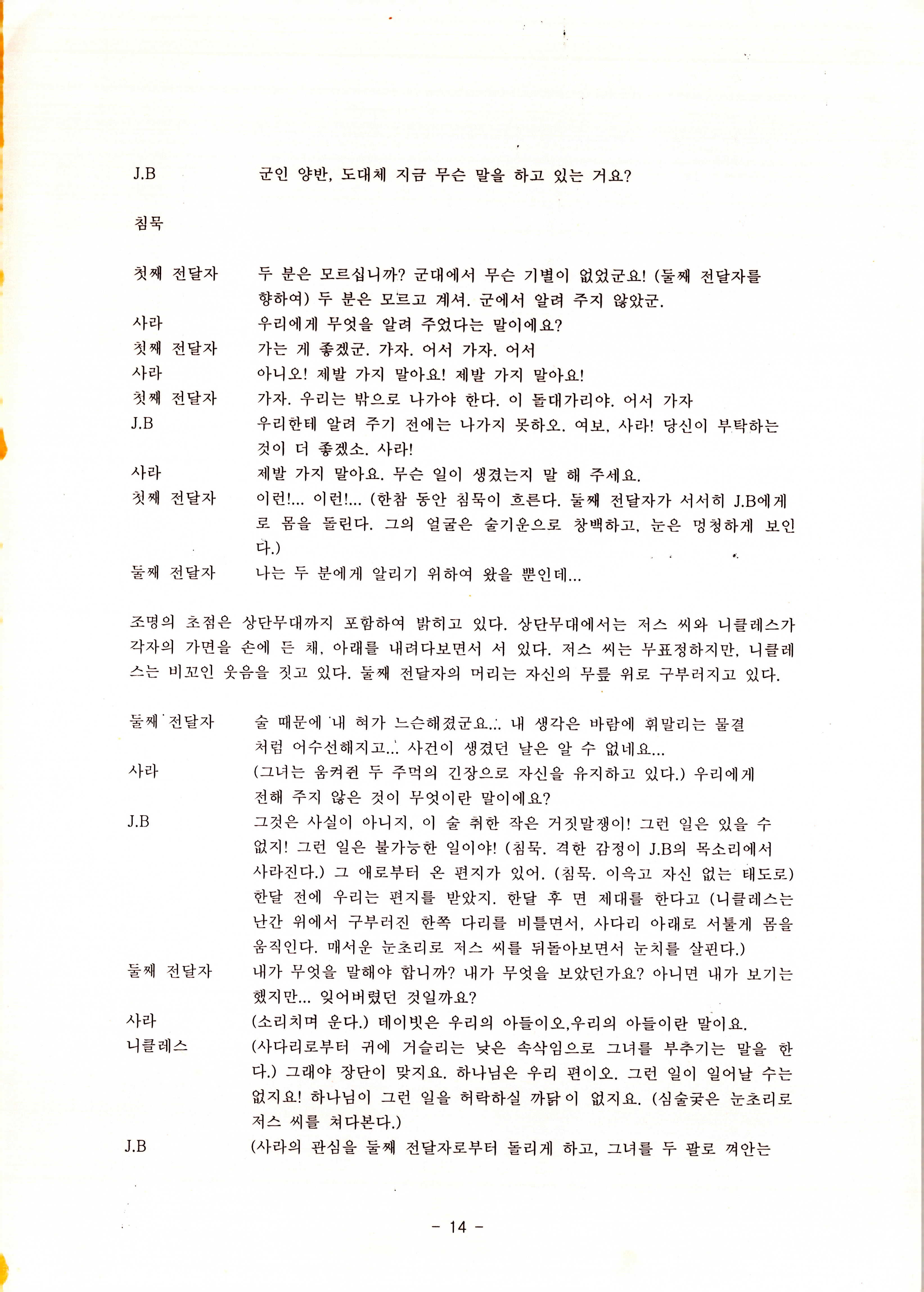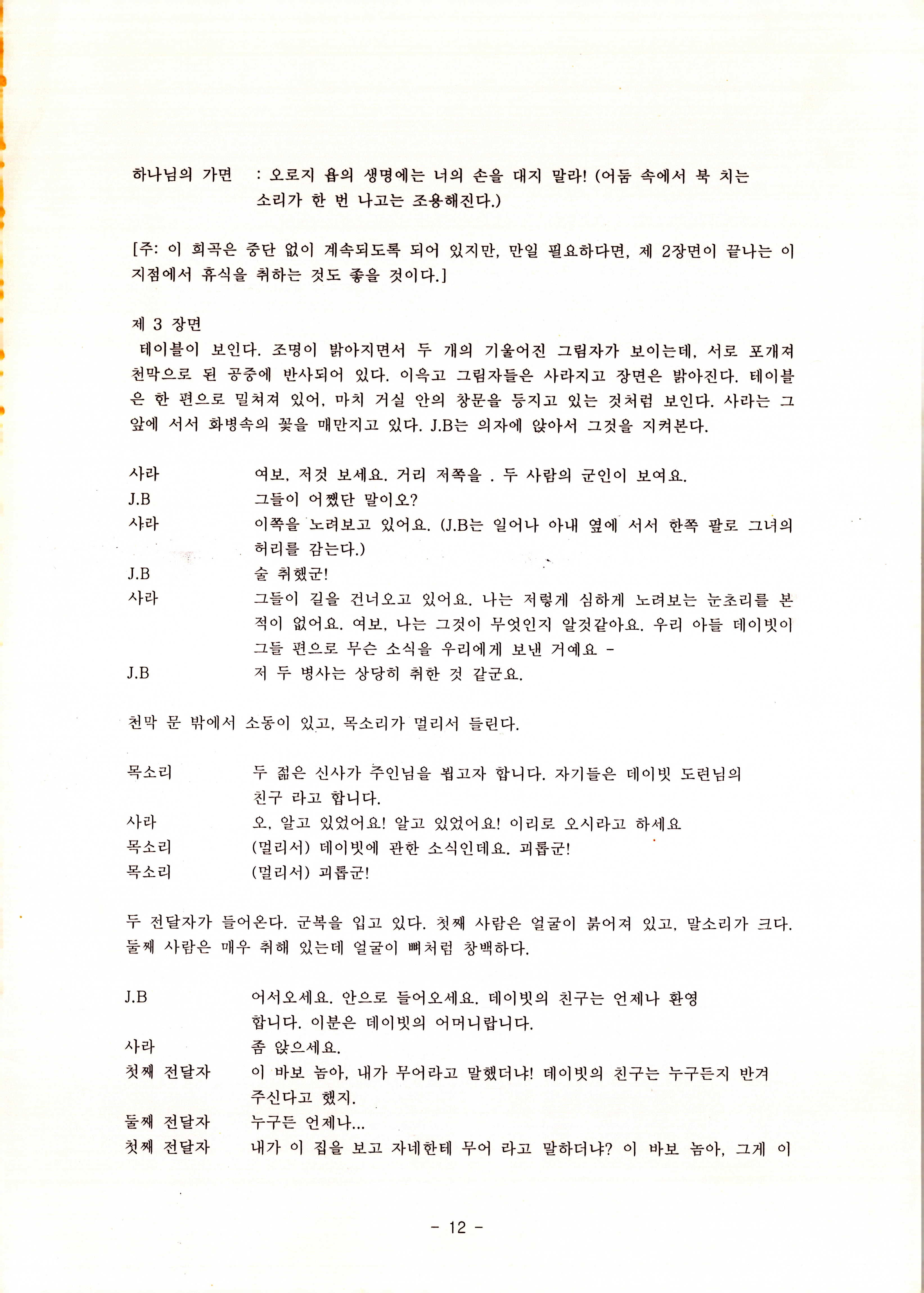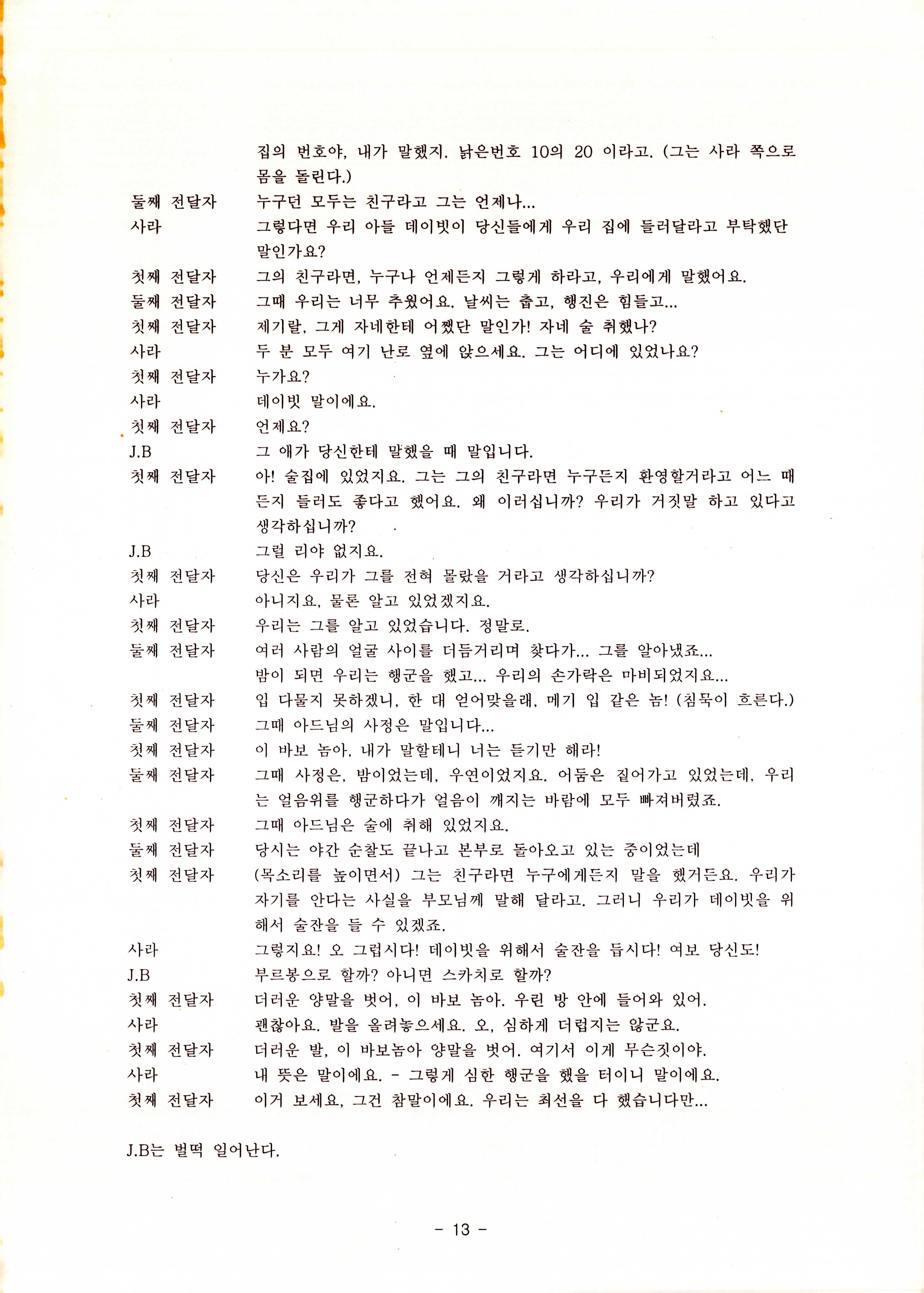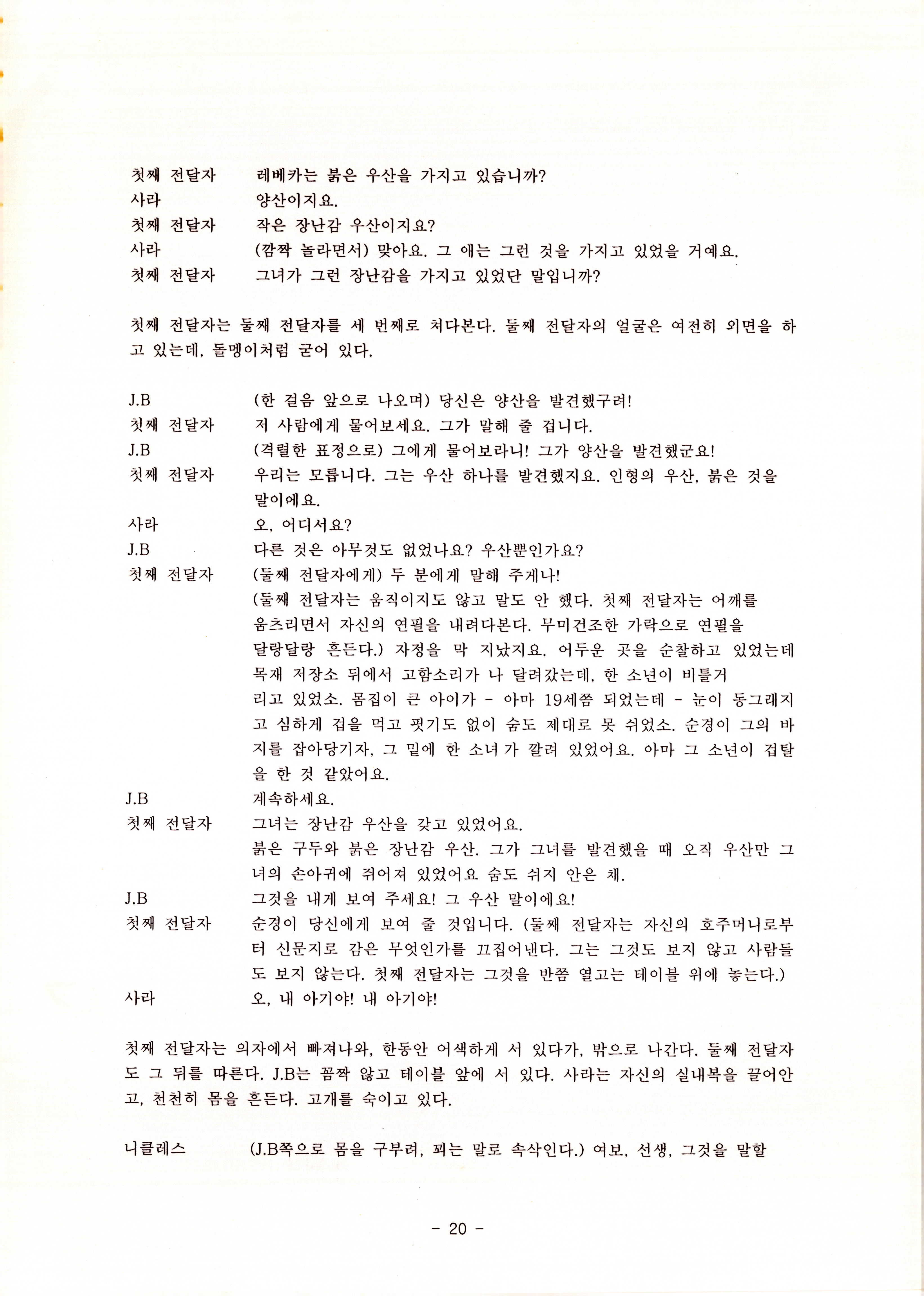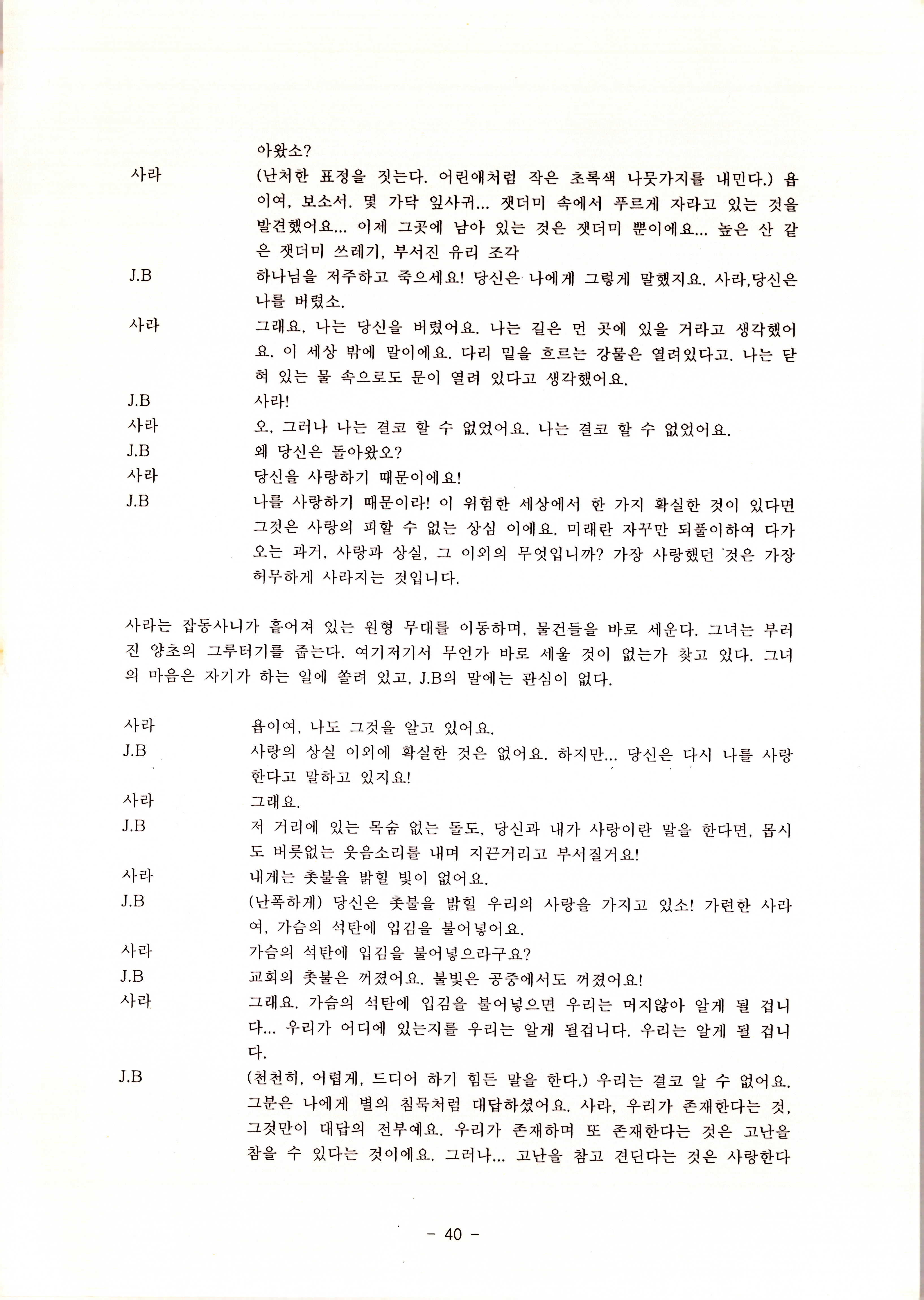 2010년 9월의 '욥記(원작: 제이비(J.B))' 대본집이다. 원작자 아치볼드 머클리시 연극으로 19그리고80, 위트에 이은 부두연극단의 인간의 고난과 복음에 관한 3번째 이야기 욥記 시나리오가 기술되어 있다.