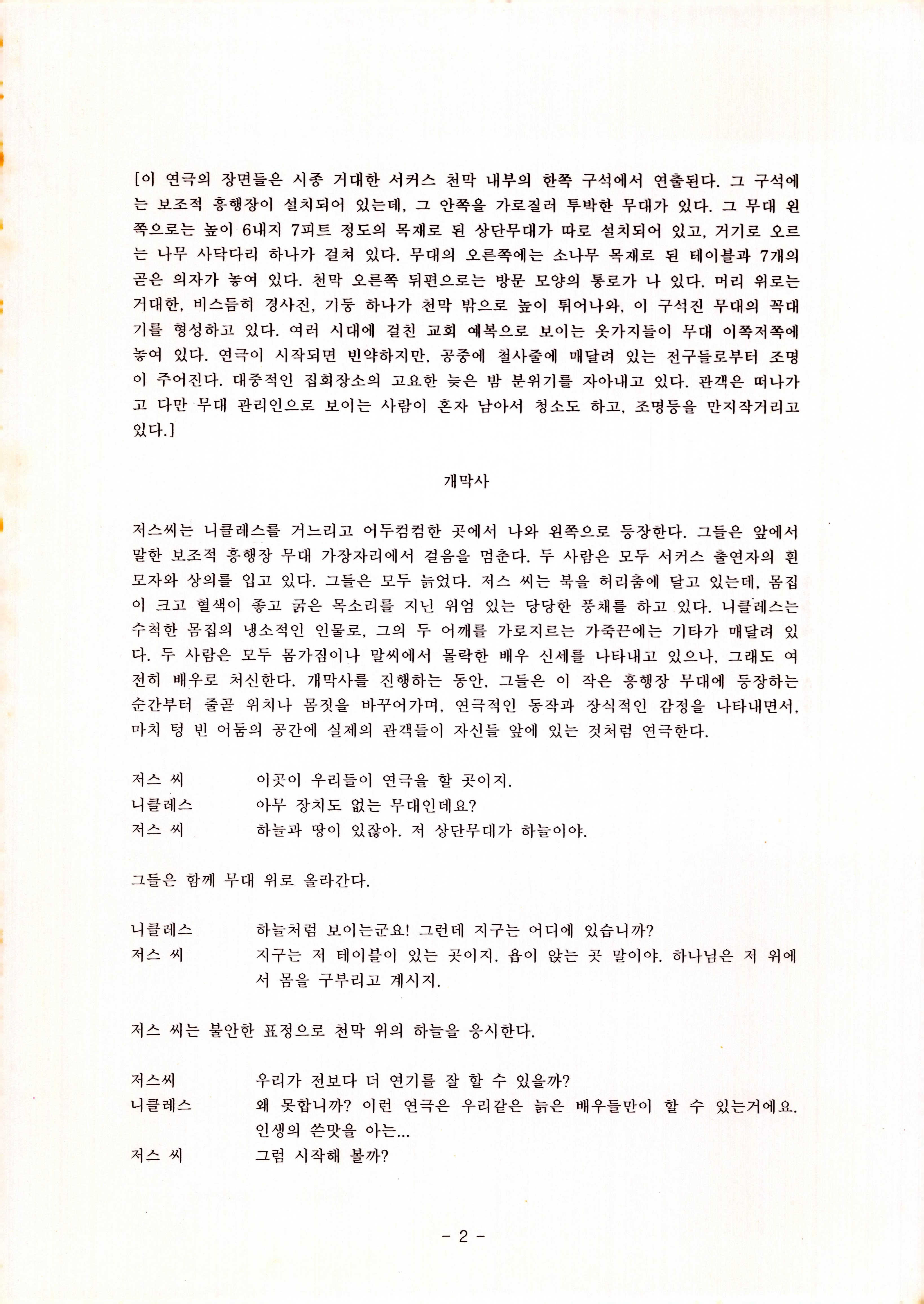 재구성, 연출 이성규. 첫페이지 메모(11월 22일-12-2 가마골 → 연습 추석지나고 저녁), 두번째 페이지 메모("흔들리지 않는 심지깊은 연극인이 되시길!" 박미경님 惠存 2010.9. 이성규드림) 있음.