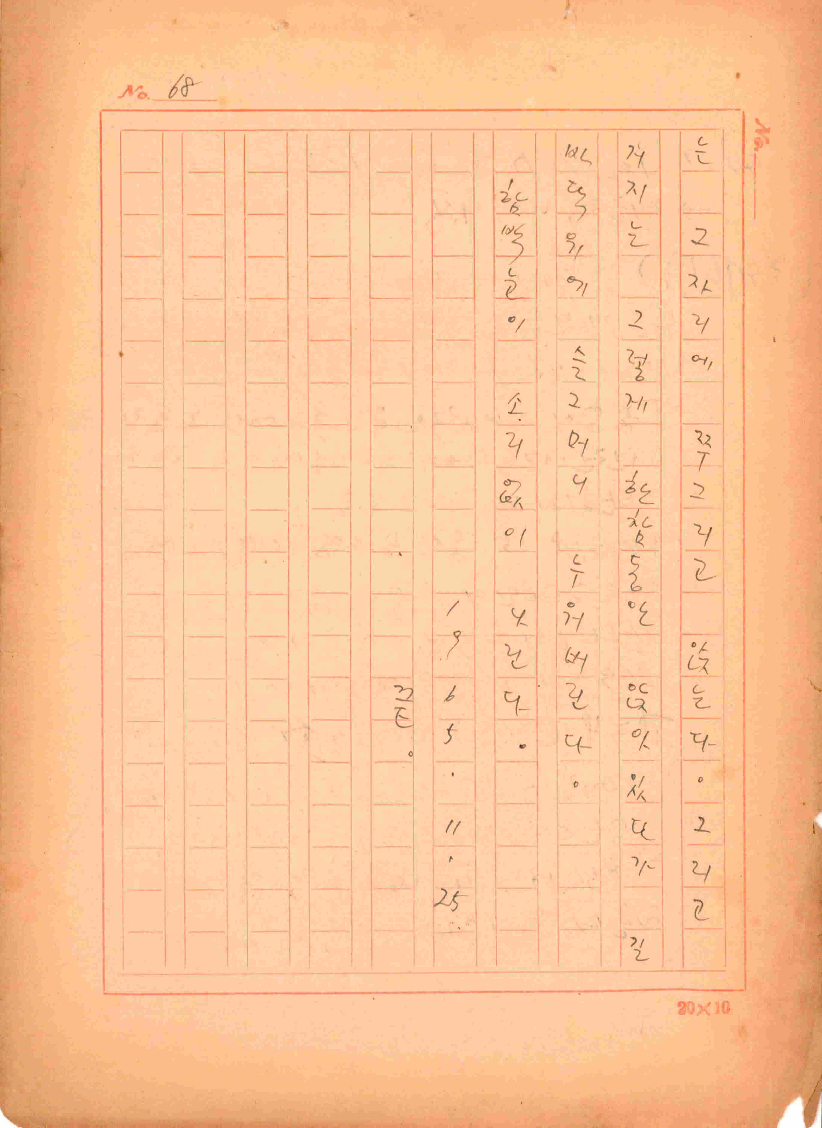 1965년 11월 25일에 집필 완료한 김성종의 미발표작 「1950년대 초기의 인형극」원고이다. 총 68장으로 구성된 단편소설이며 마지막 68페이지 뒷면을 보면 러시아 10월 혁명, 볼셰비키 혁명 등에 관하여 기술한 내용이 있다.