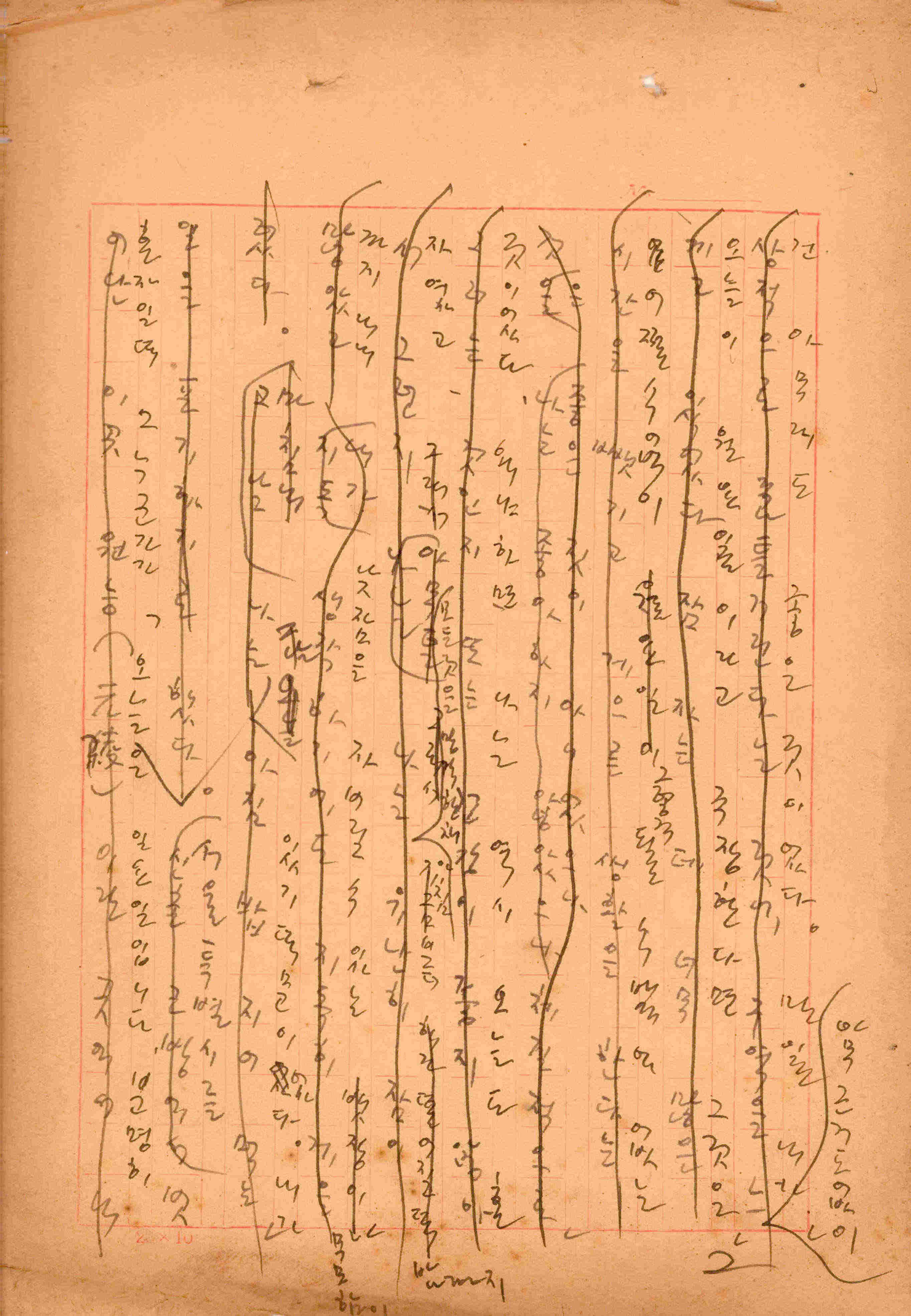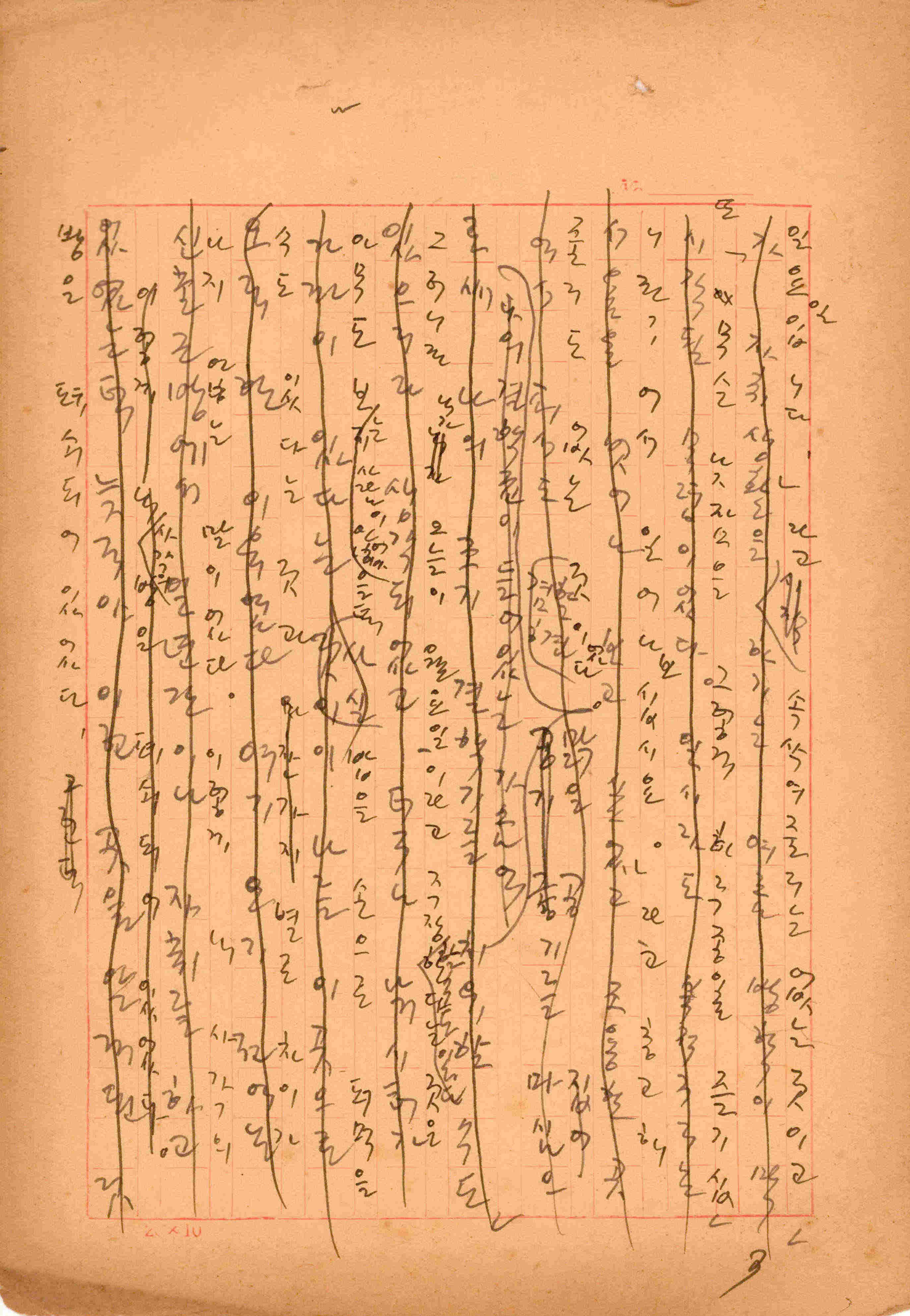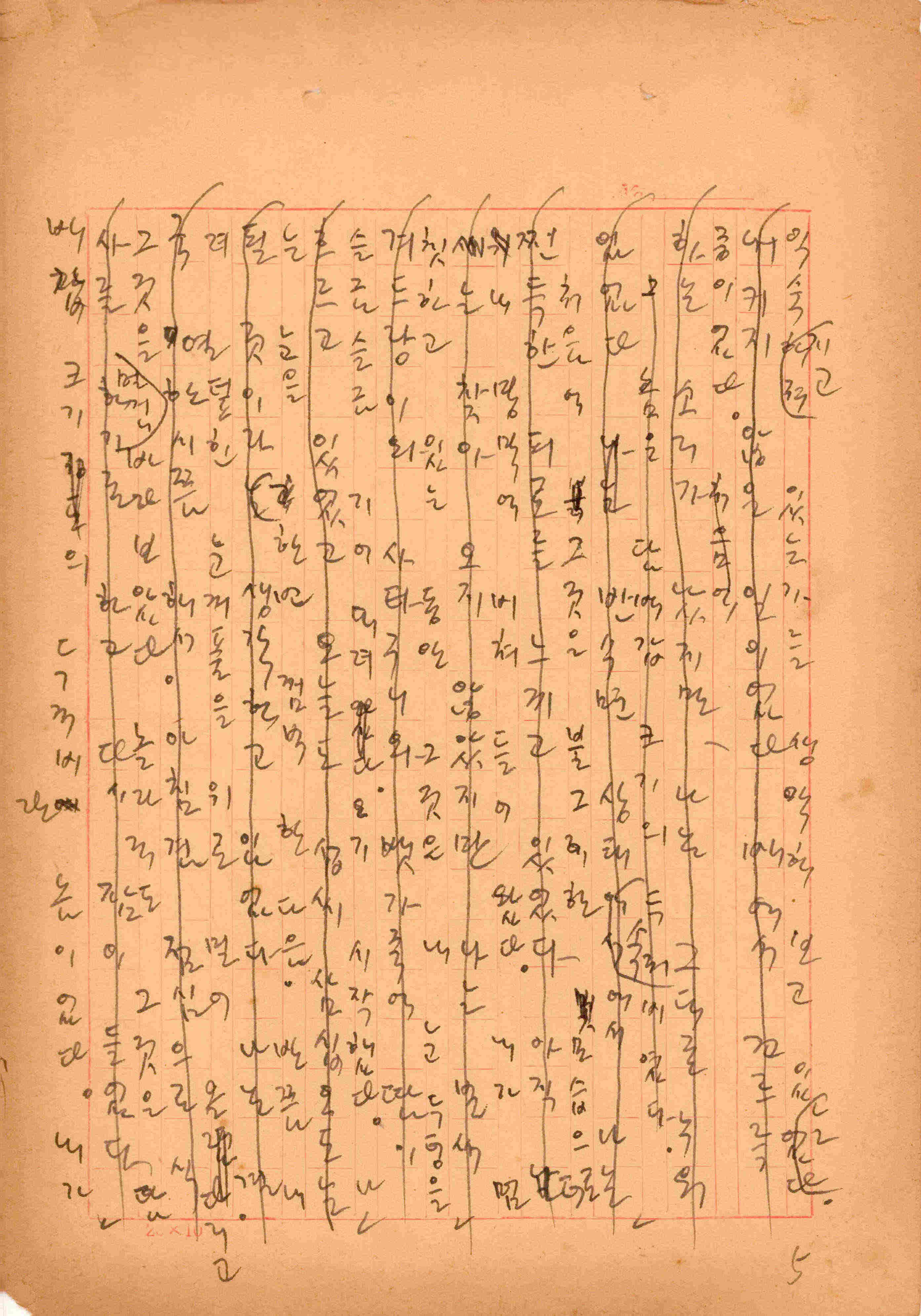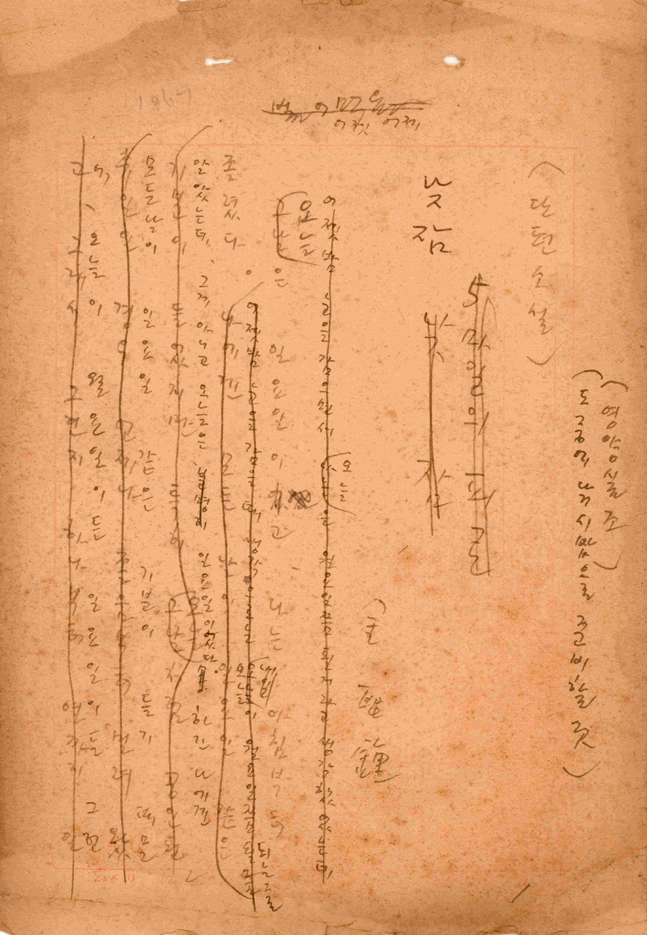 1967년에 집필한 김성종의 미발표작 「낮잠」 원고이다. 229장으로 구성된 단편소설이며 첫장을 보면 원래 제목이 '5마일의 피로' 라는 것을 알 수 있다. 초반 31장까지는 대부분의 내용을 삭제하려고 한 것으로 보인다.