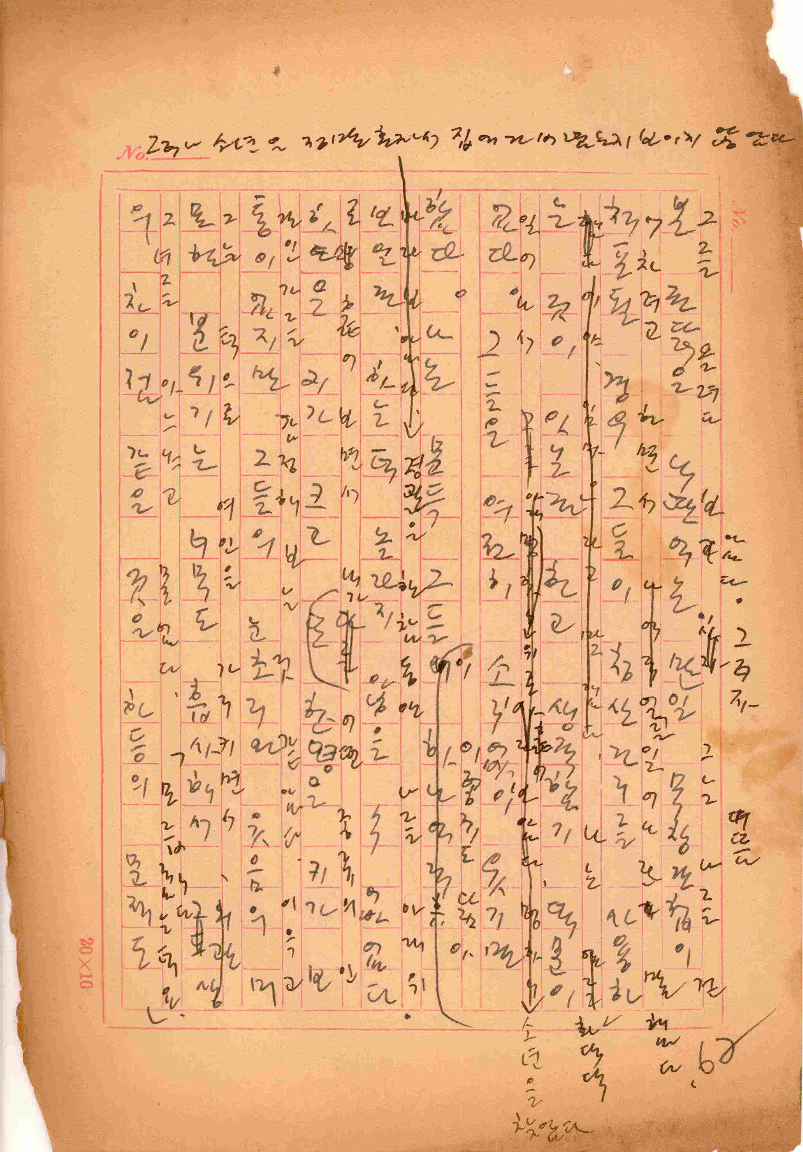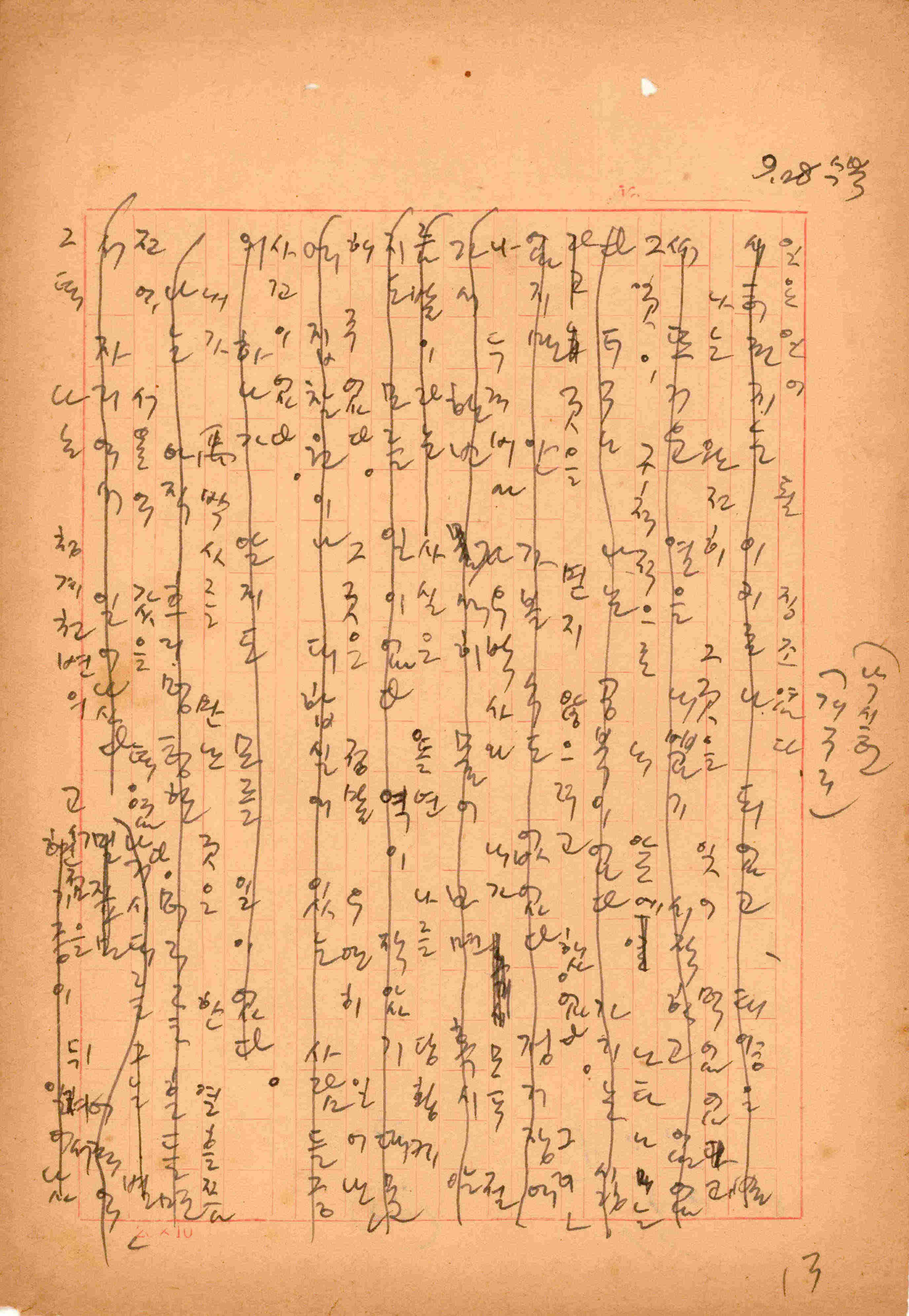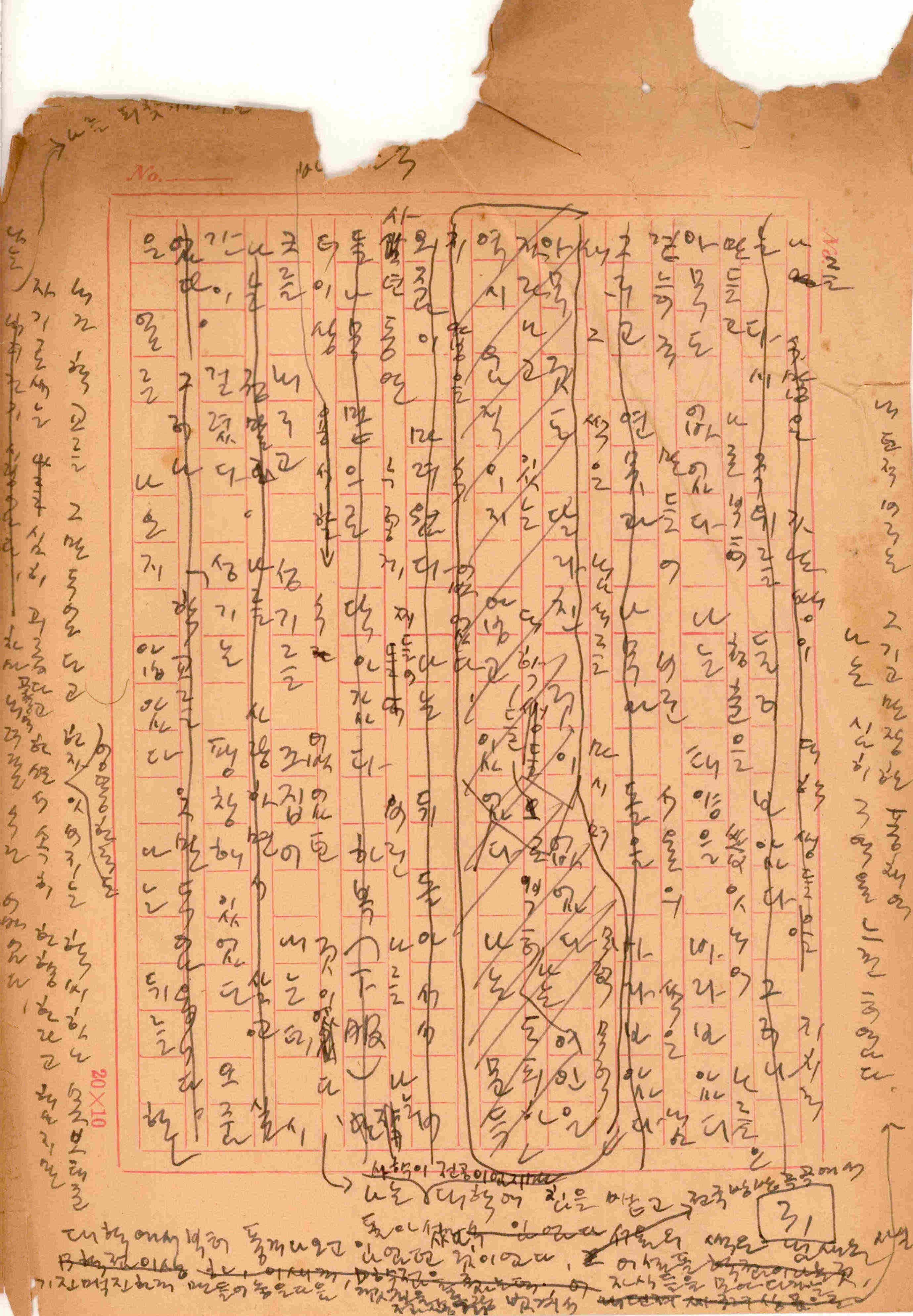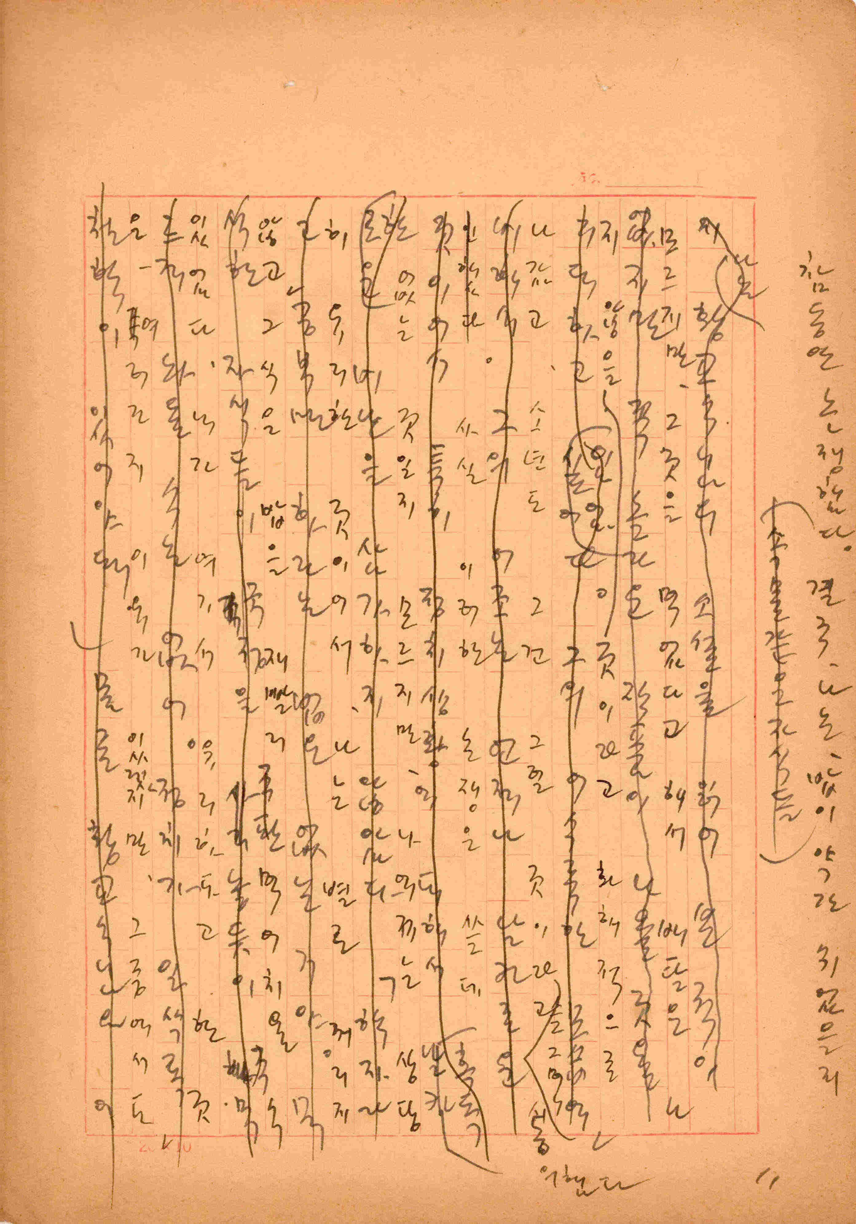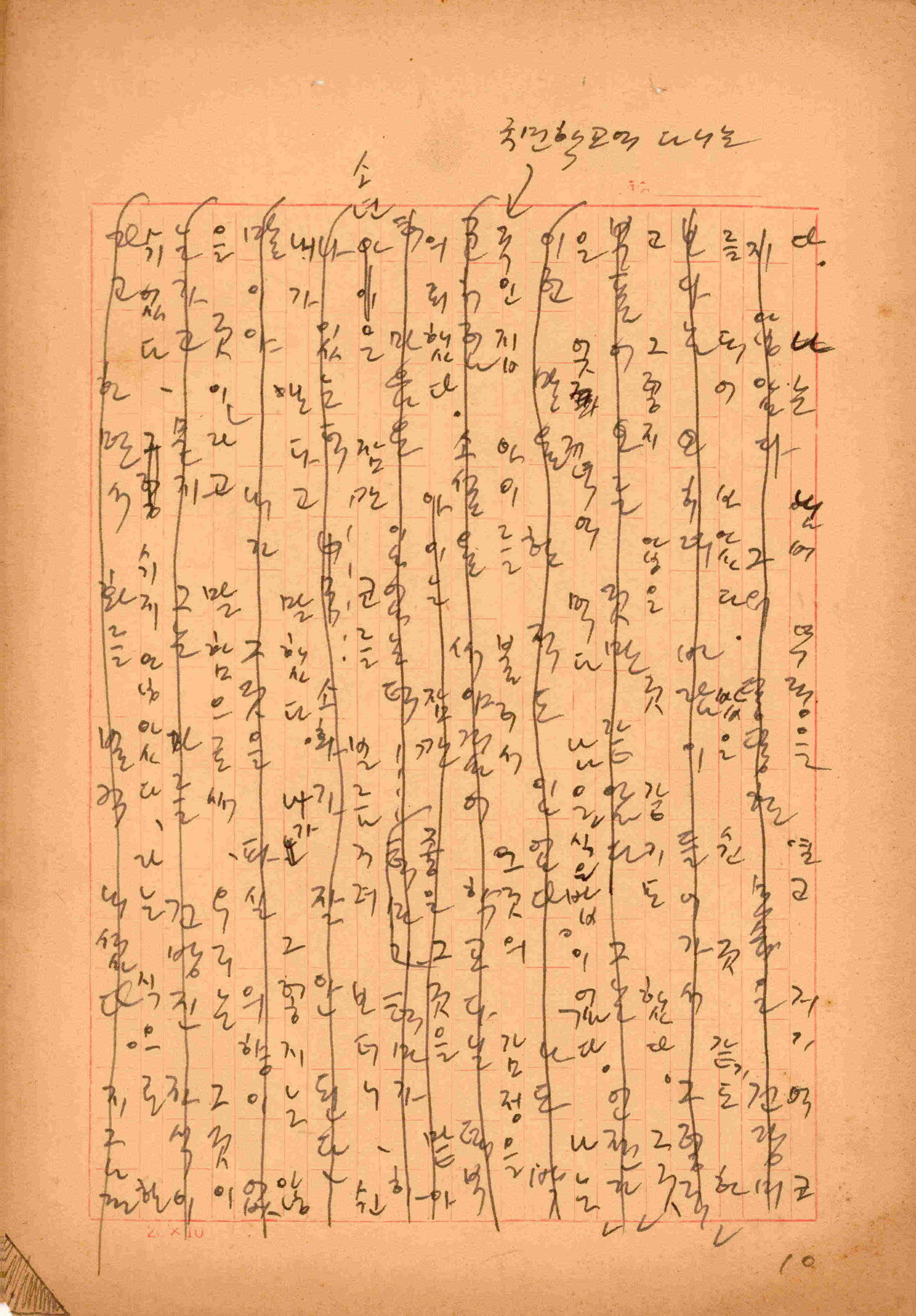 1967년에 집필한 김성종의 미발표작 「낮잠」 원고이다. 229장으로 구성된 단편소설이며 첫장을 보면 원래 제목이 '5마일의 피로' 라는 것을 알 수 있다. 초반 31장까지는 대부분의 내용을 삭제하려고 한 것으로 보인다.