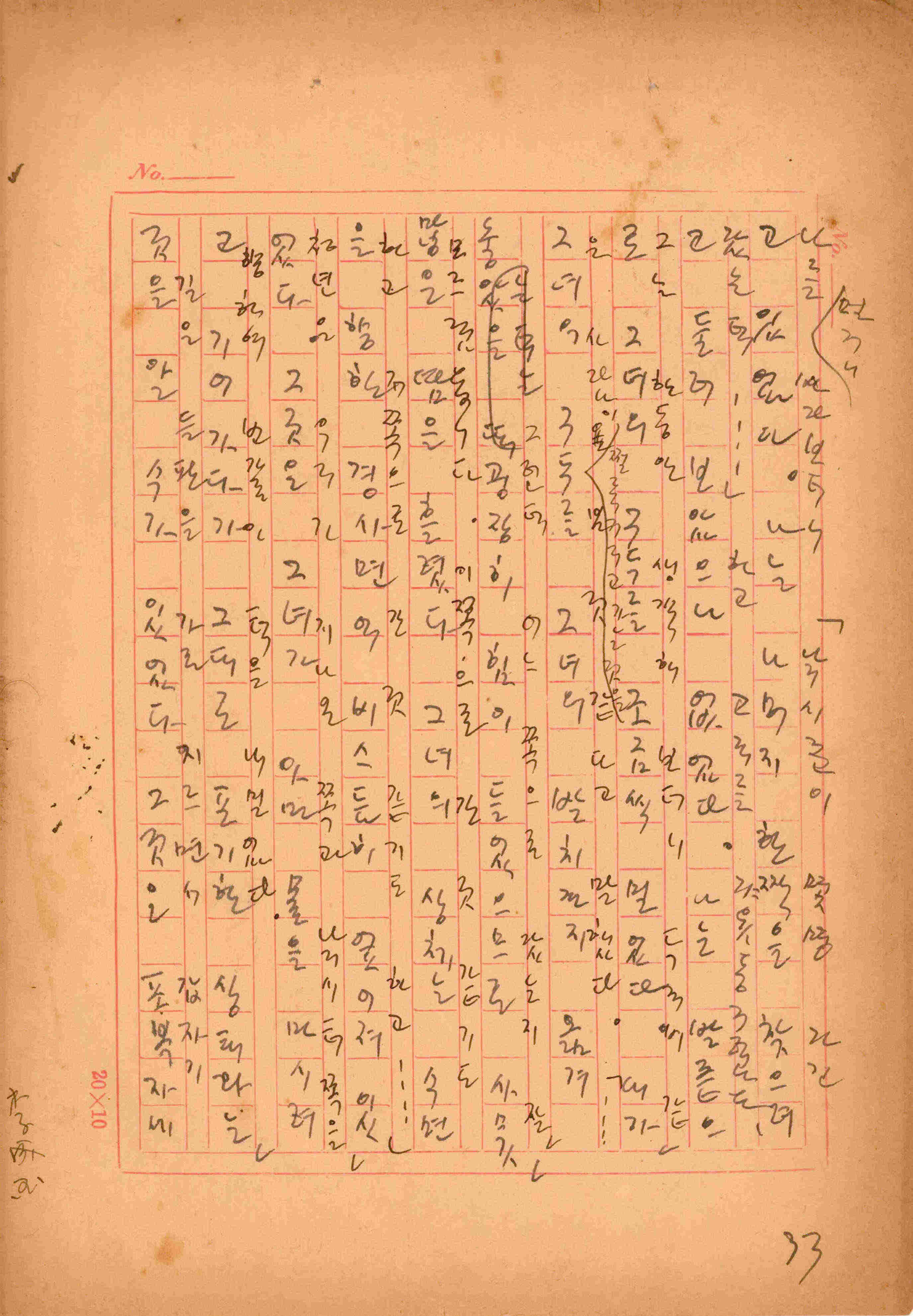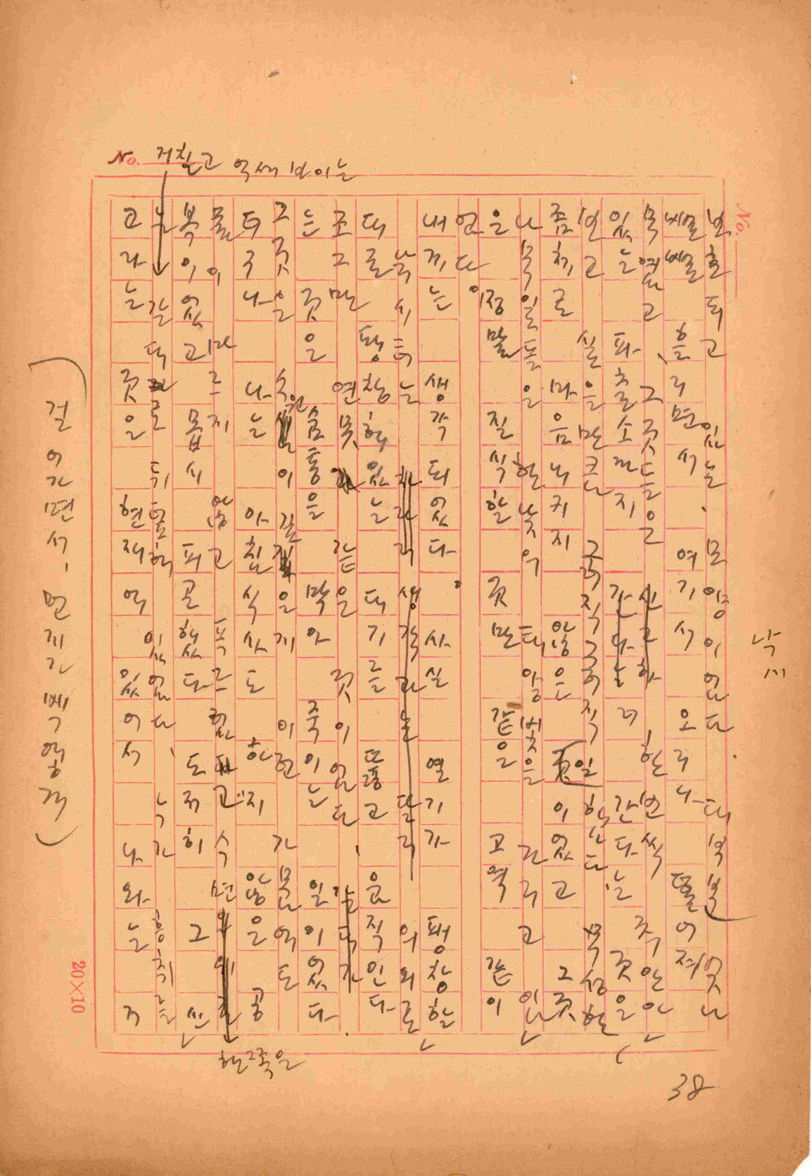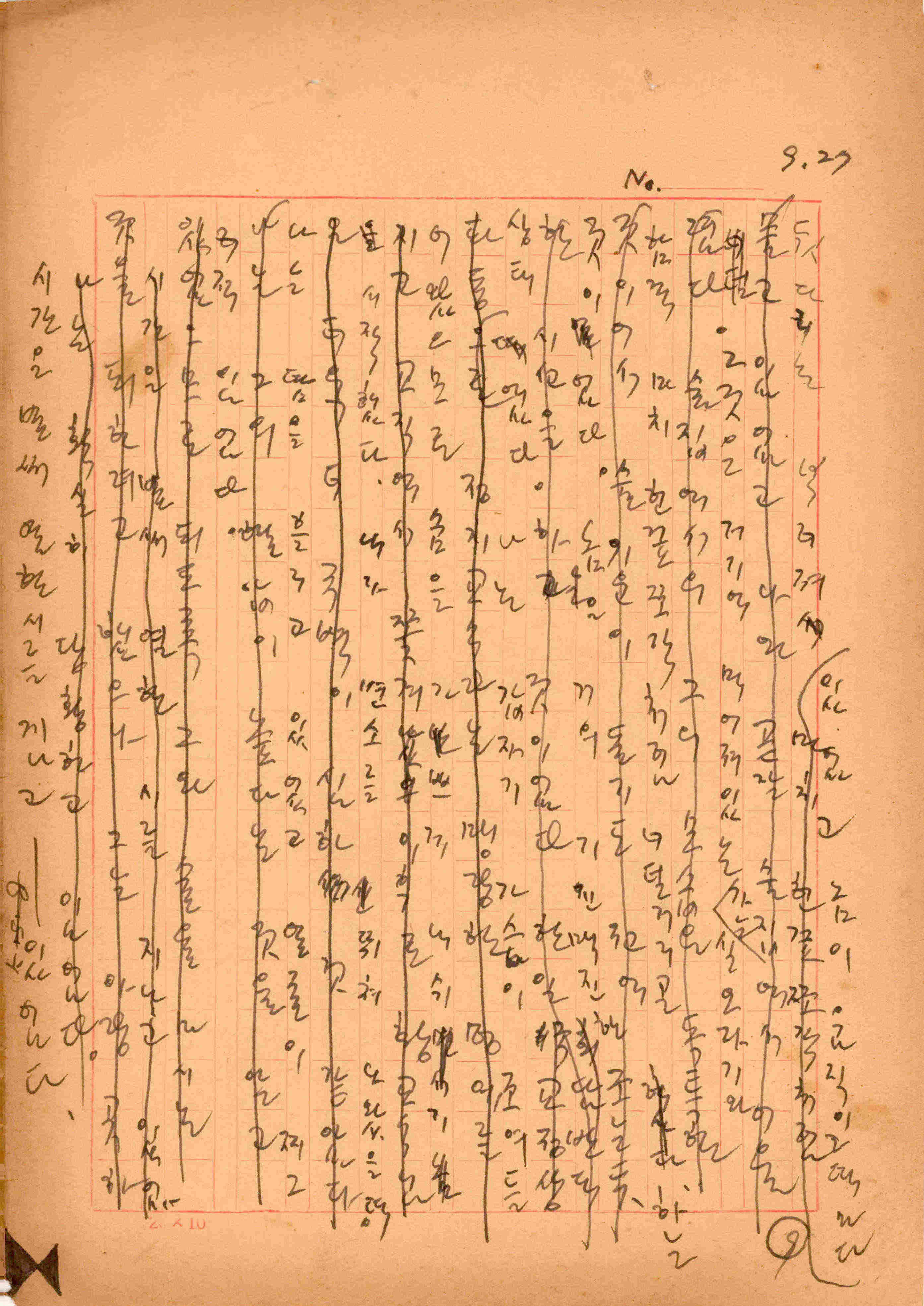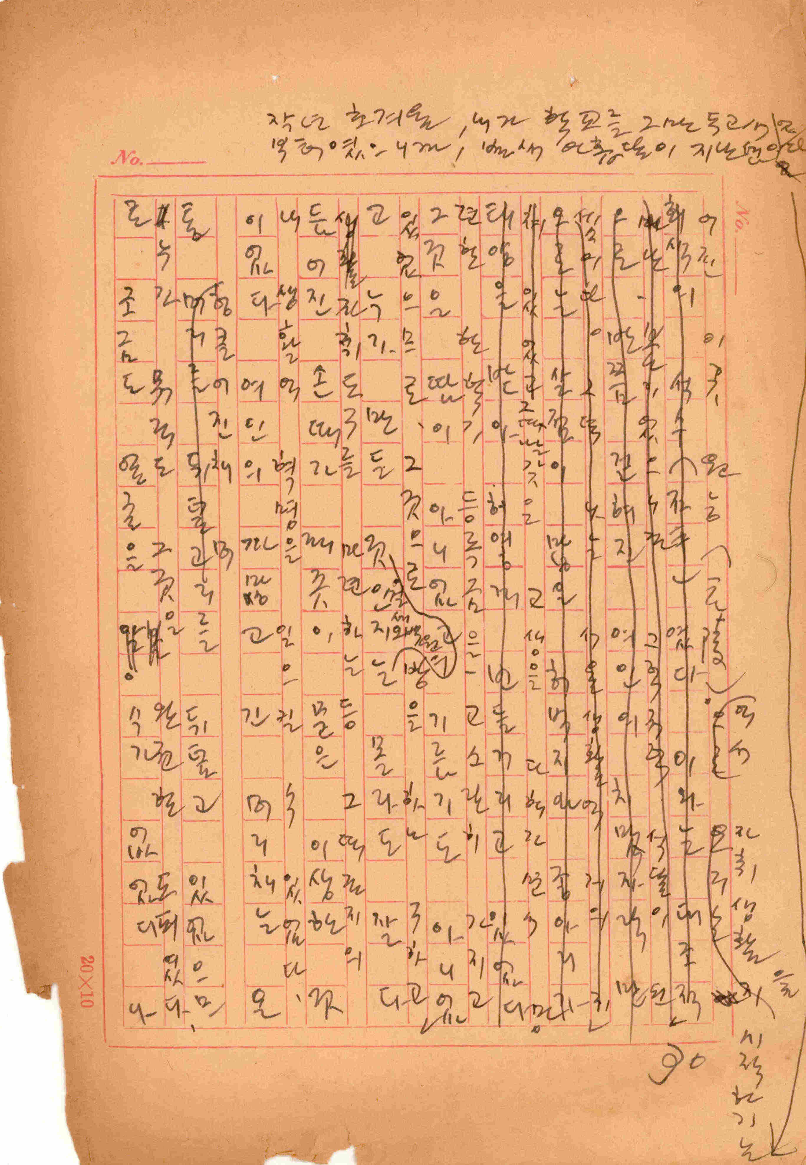 1967년에 집필한 김성종의 미발표작 「낮잠」 원고이다. 229장으로 구성된 단편소설이며 첫장을 보면 원래 제목이 '5마일의 피로' 라는 것을 알 수 있다. 초반 31장까지는 대부분의 내용을 삭제하려고 한 것으로 보인다.