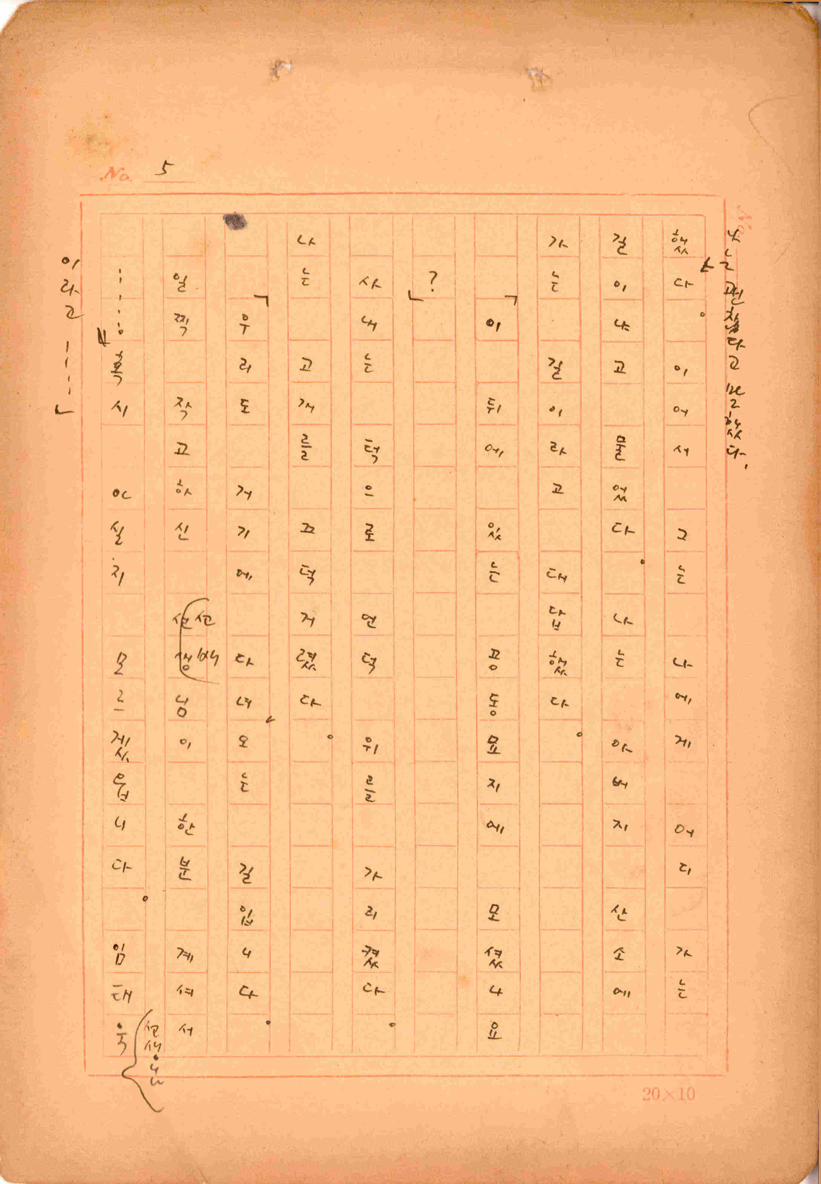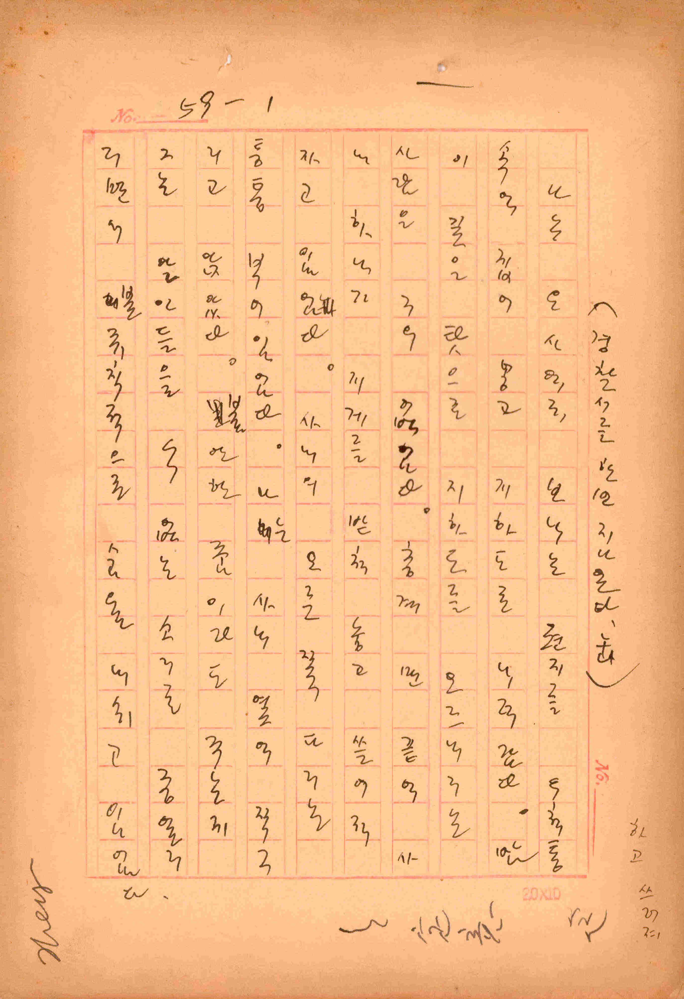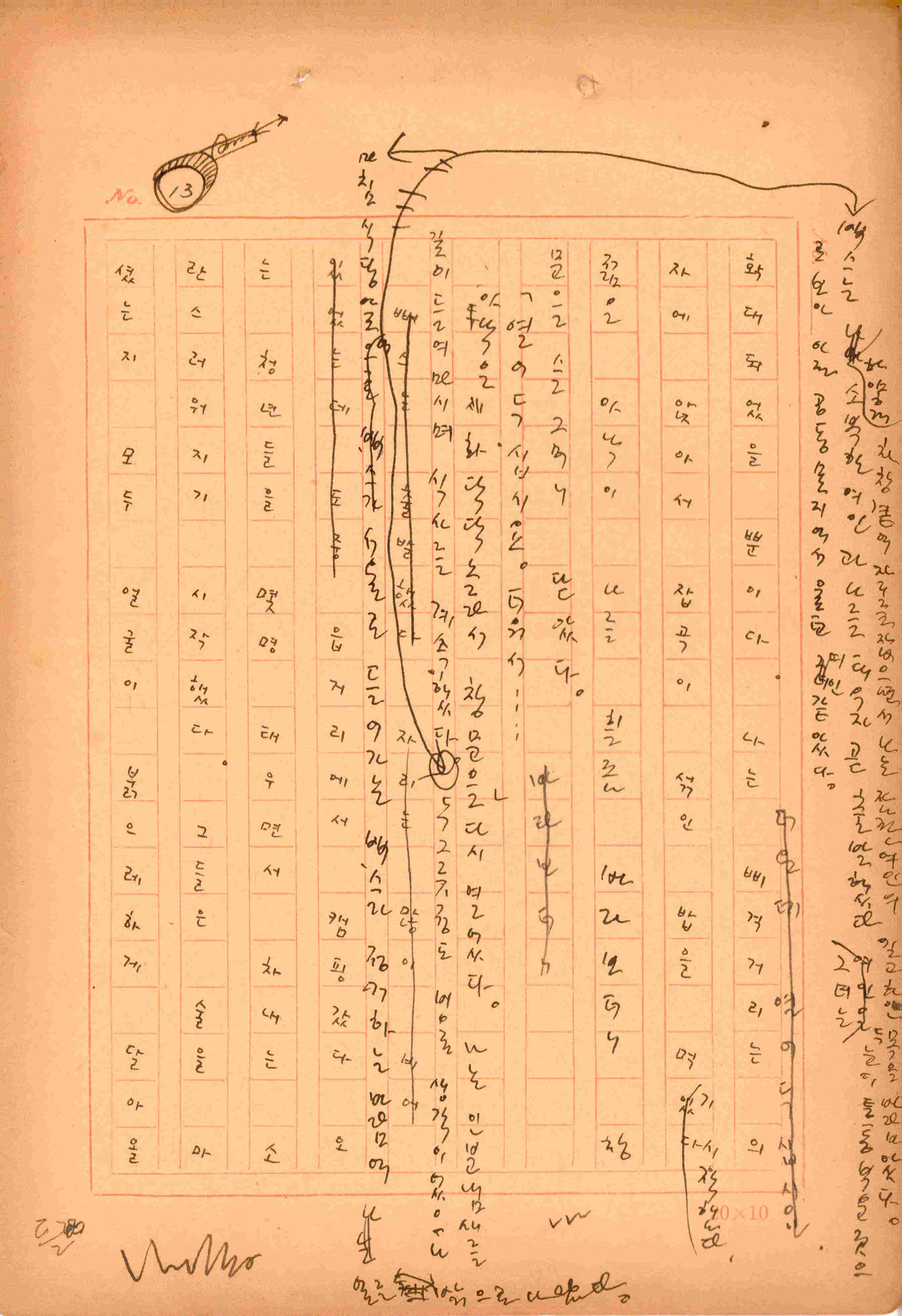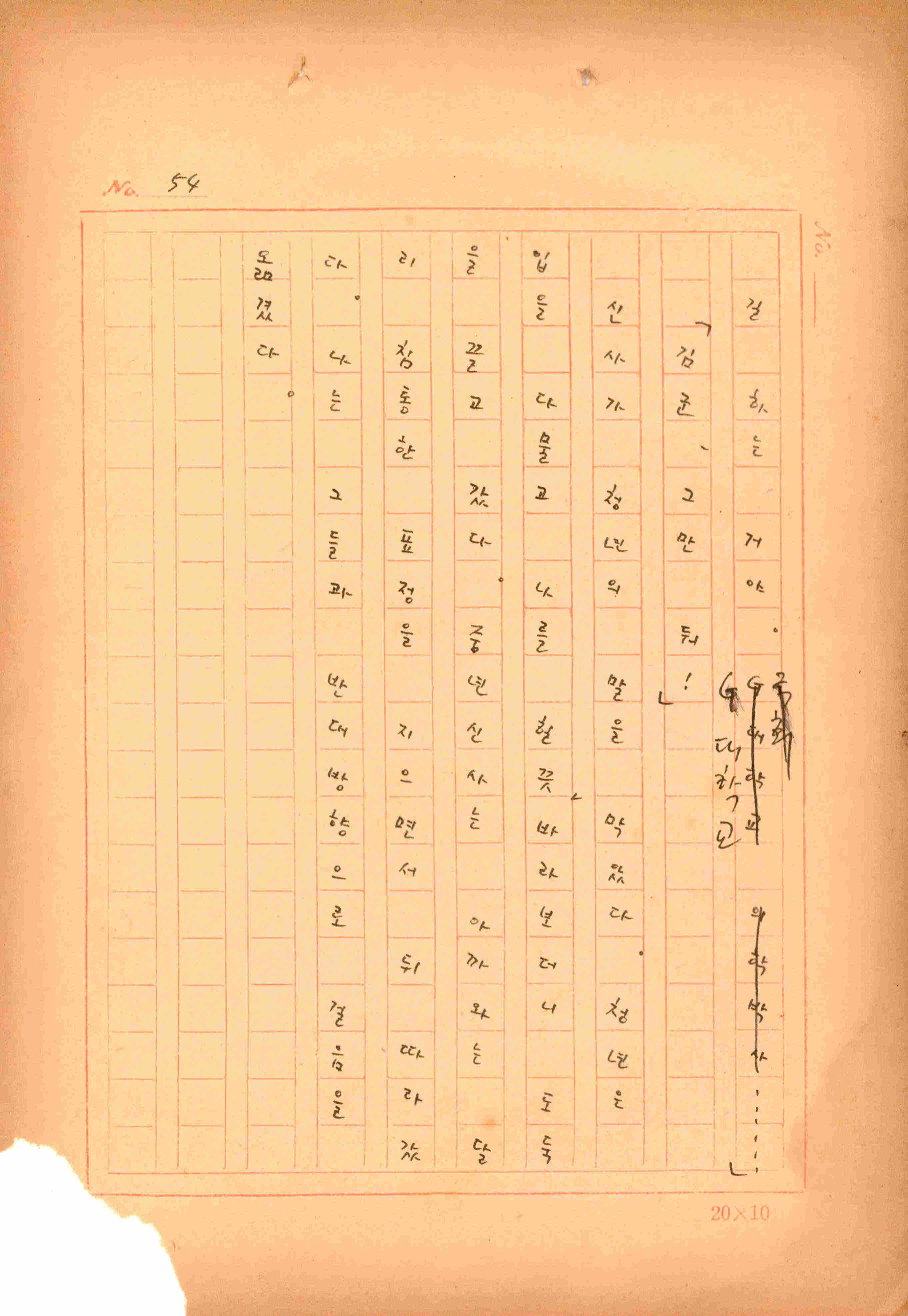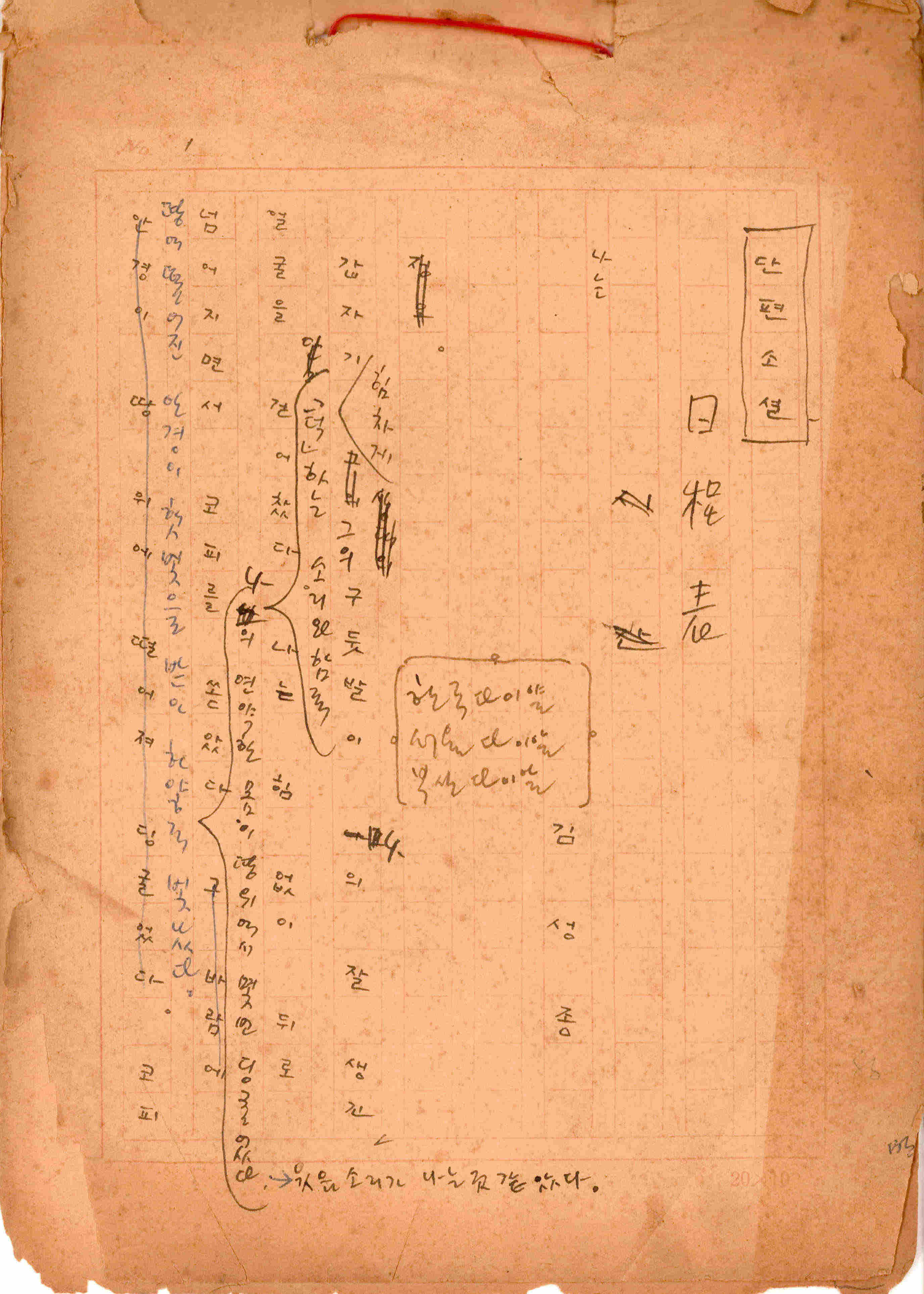 김성종의 미발표작 「일정표」 원고이다. 5장으로 구성된 단편소설이며 마지막 문장('…다 건너간 노인이 경찰서 OO')을 보면 미완성작으로 추정된다.