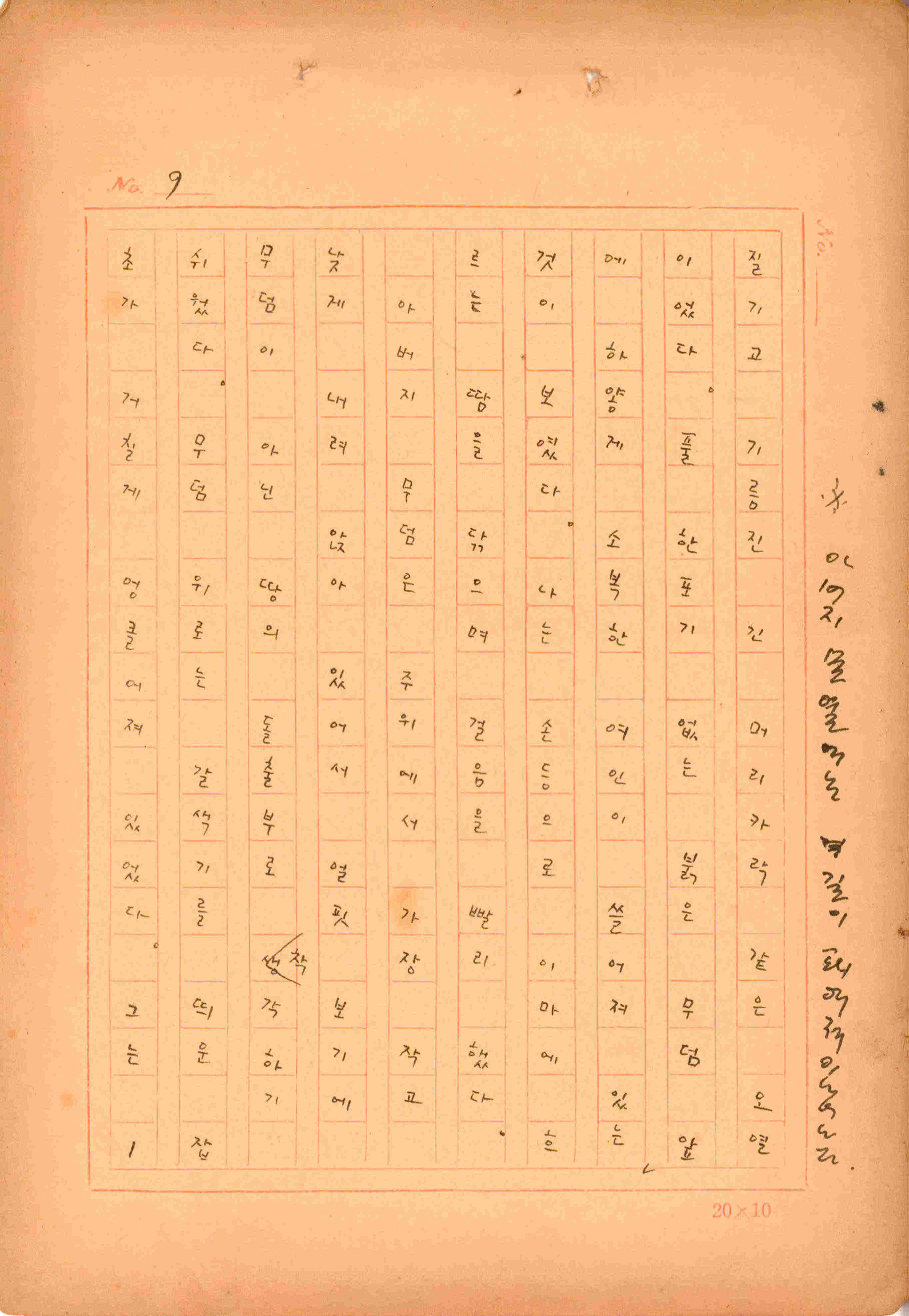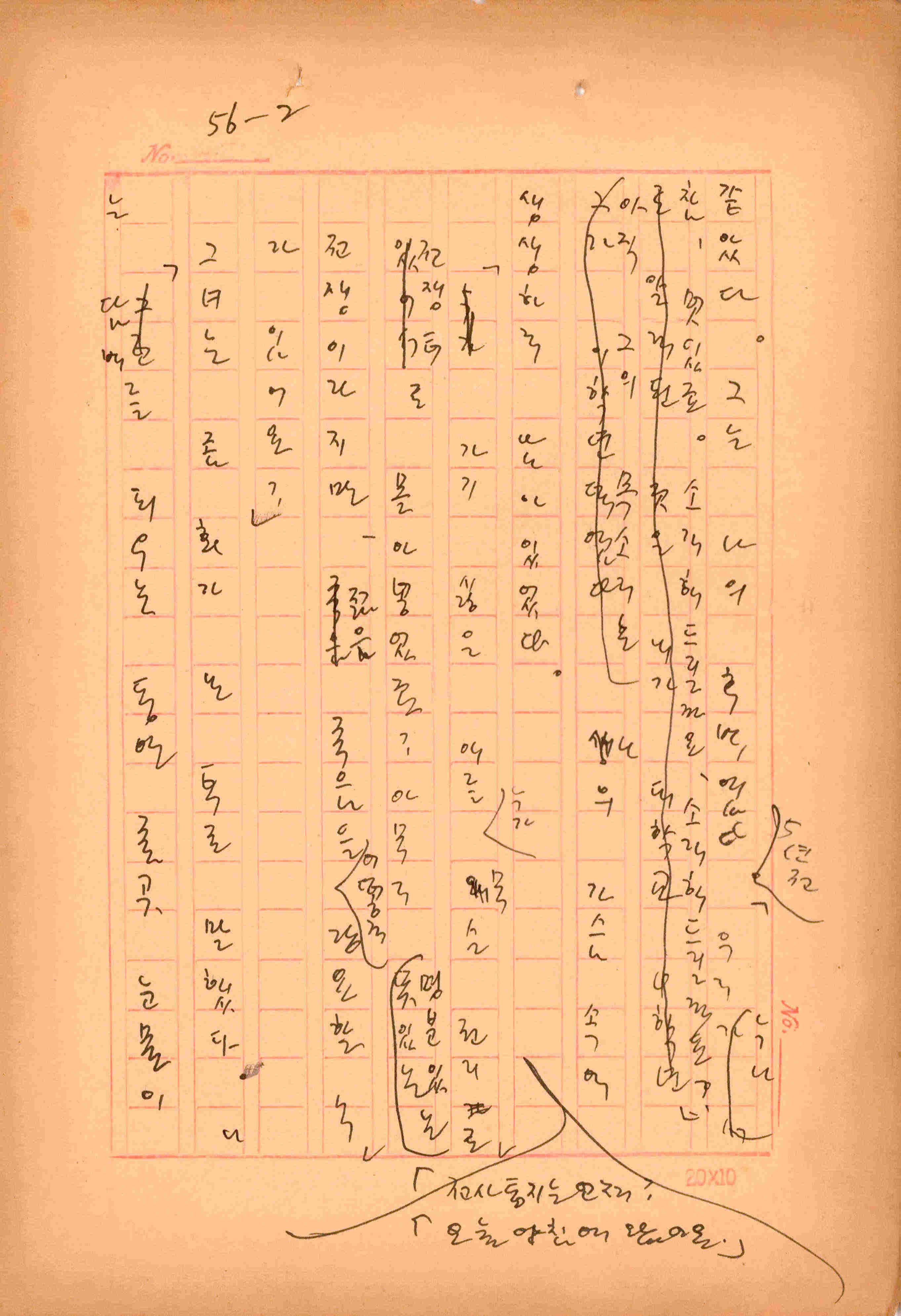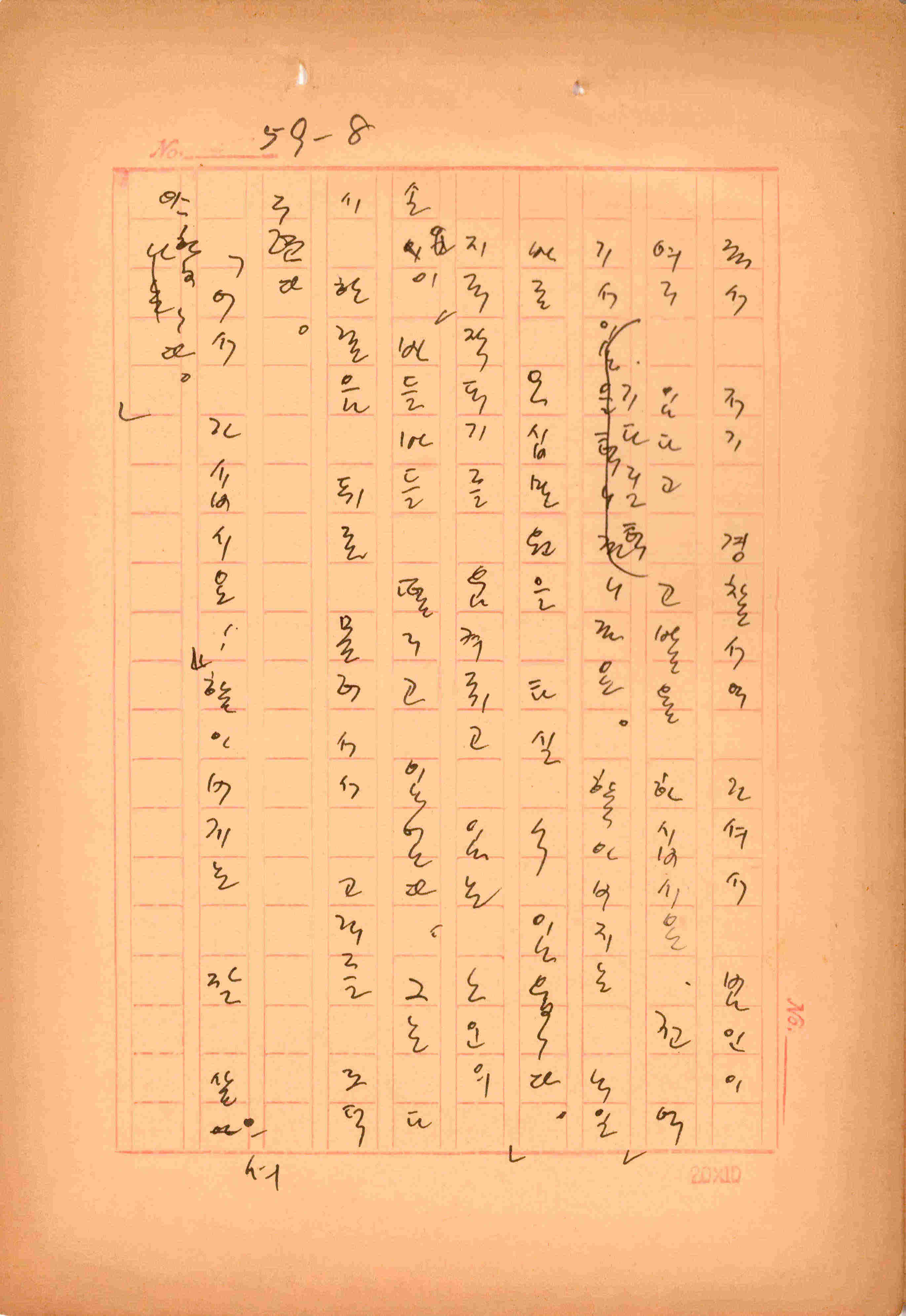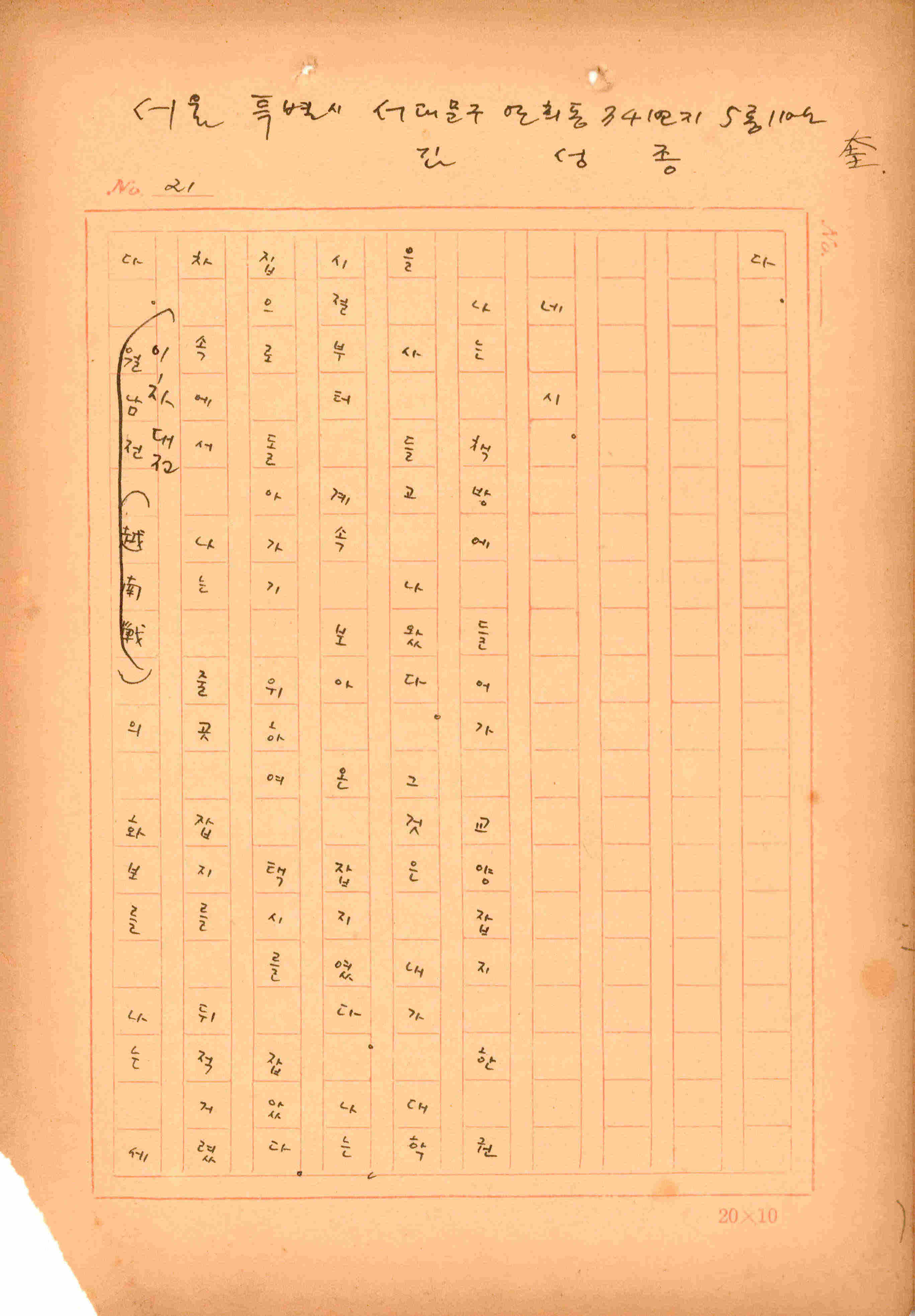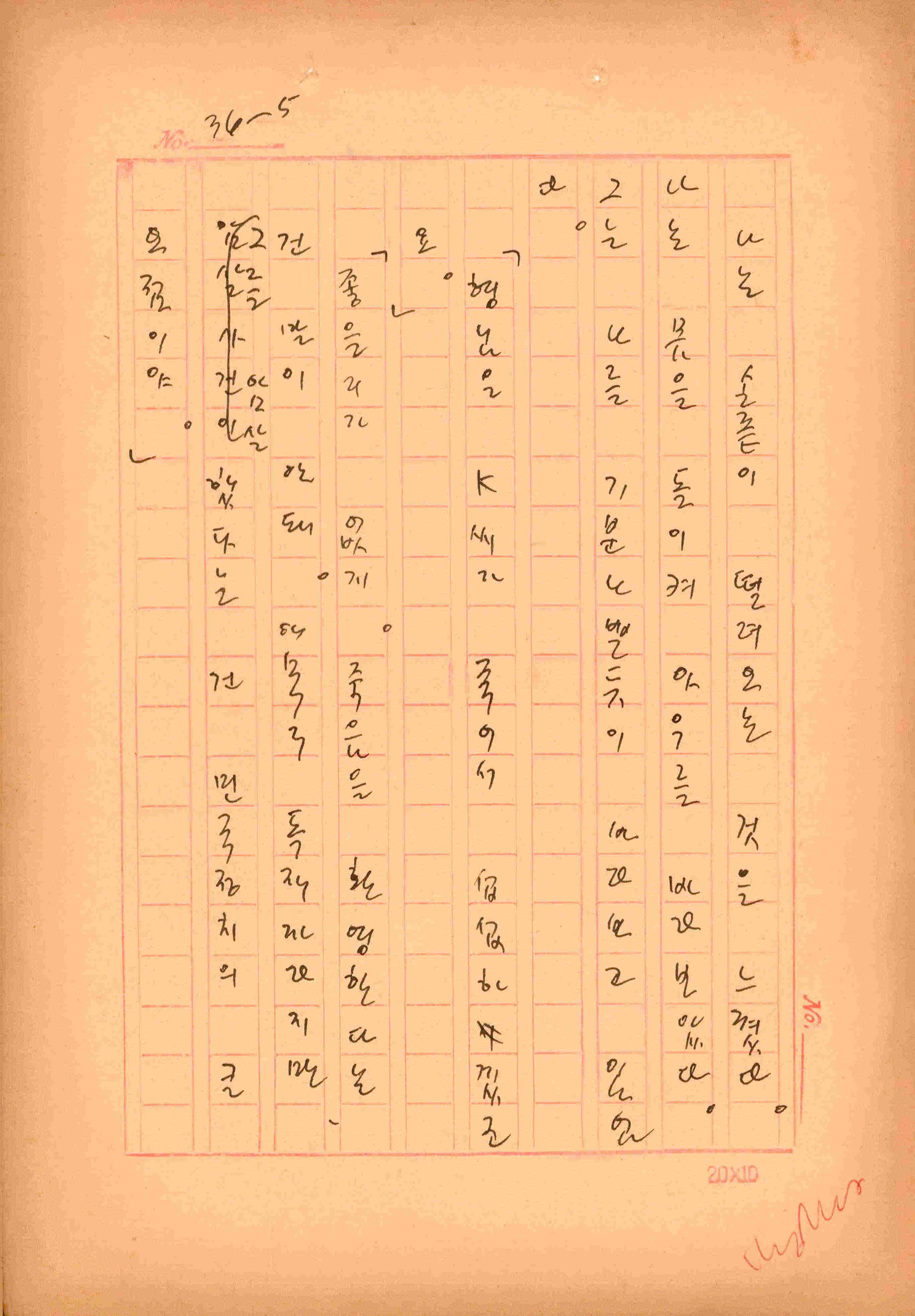 김성종의 미발표작 「일정표」 원고이다. 5장으로 구성된 단편소설이며 마지막 문장('…다 건너간 노인이 경찰서 OO')을 보면 미완성작으로 추정된다.