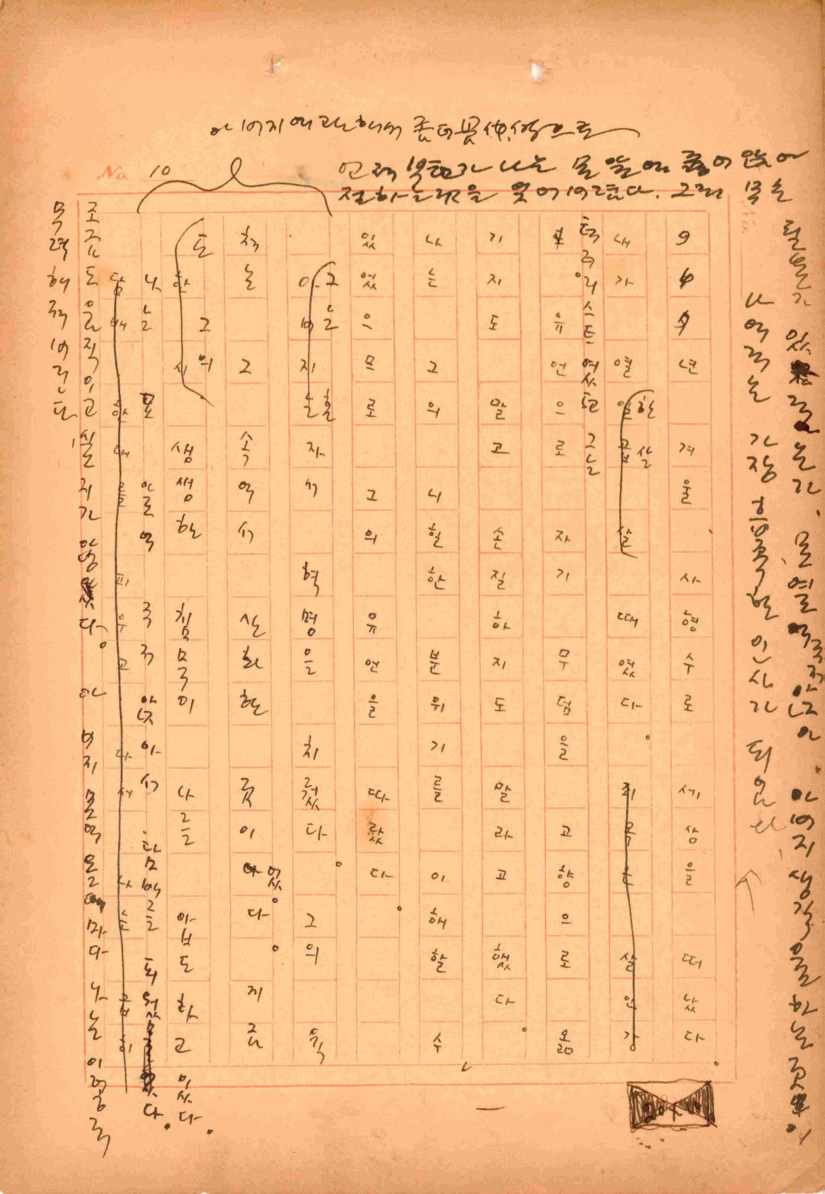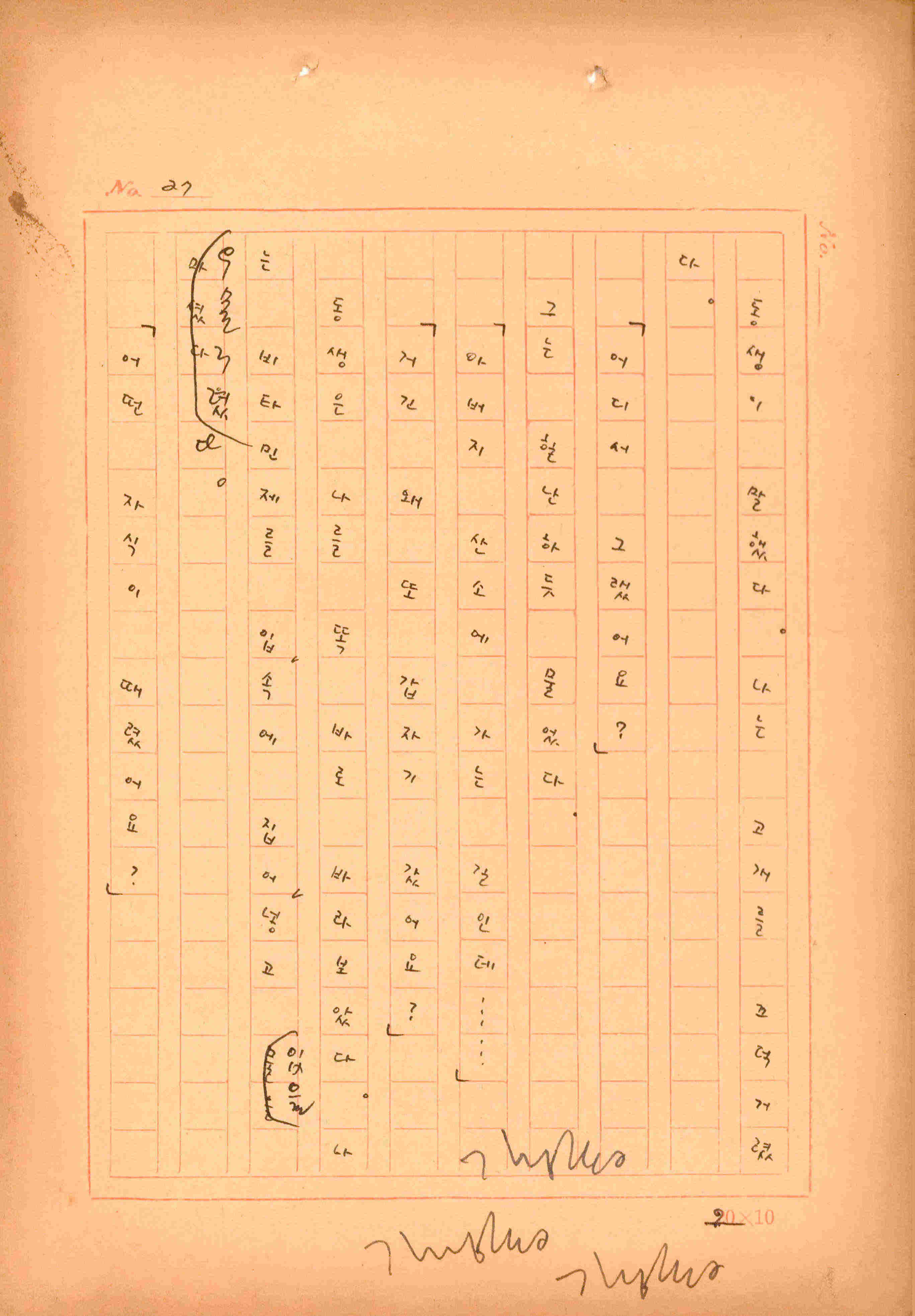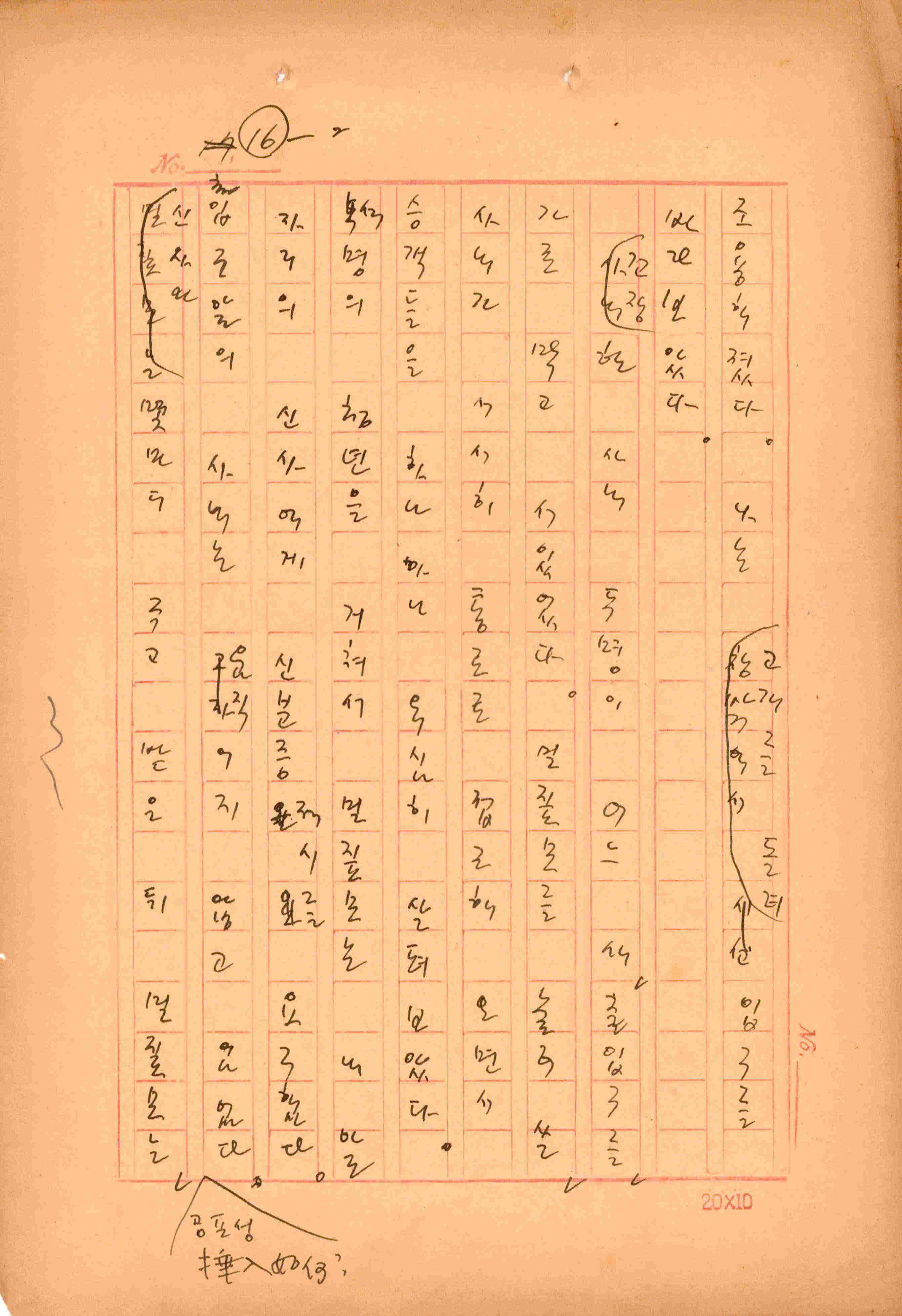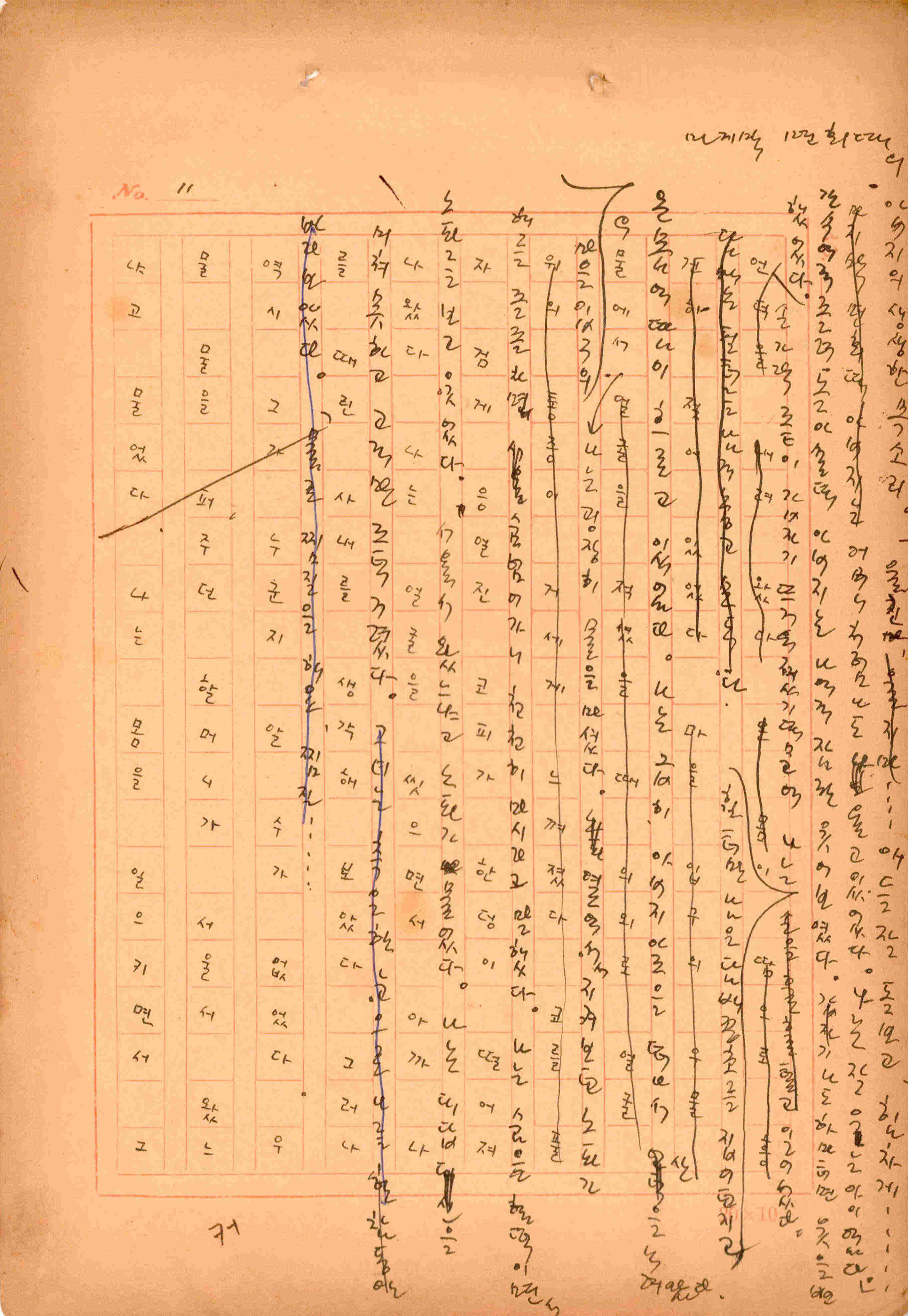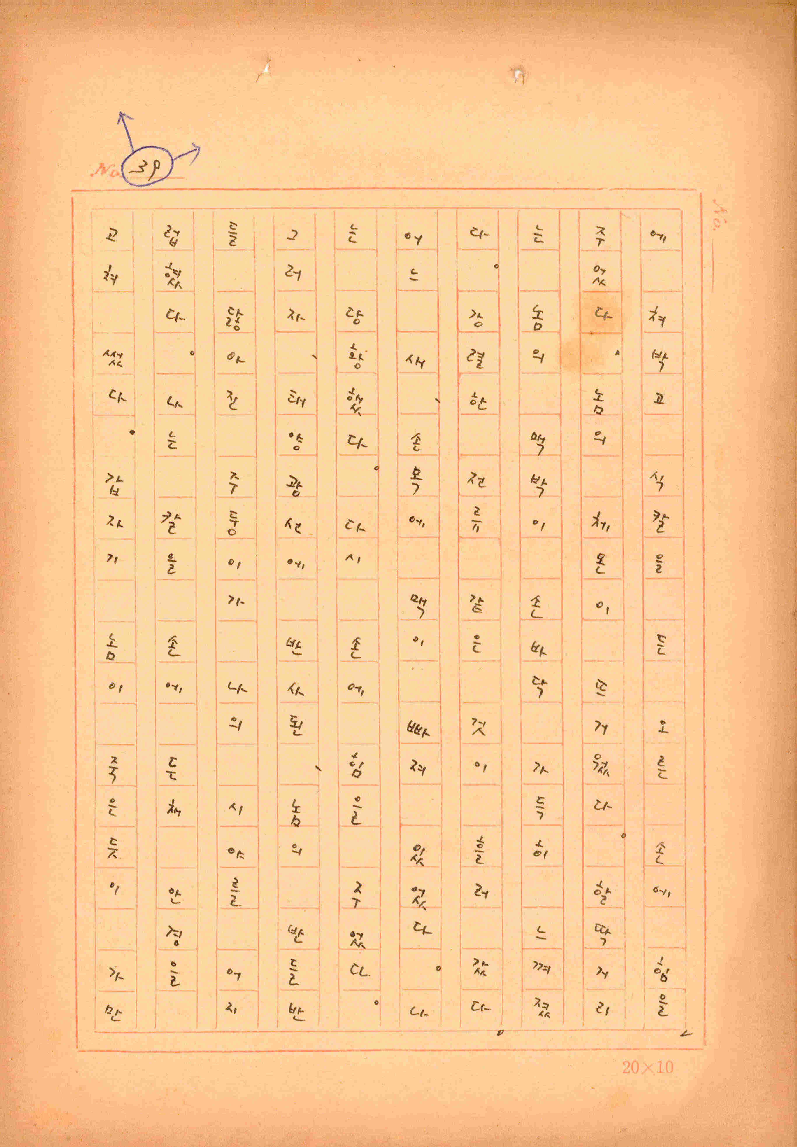 김성종의 미발표작 「일정표」 원고이다. 5장으로 구성된 단편소설이며 마지막 문장('…다 건너간 노인이 경찰서 OO')을 보면 미완성작으로 추정된다.