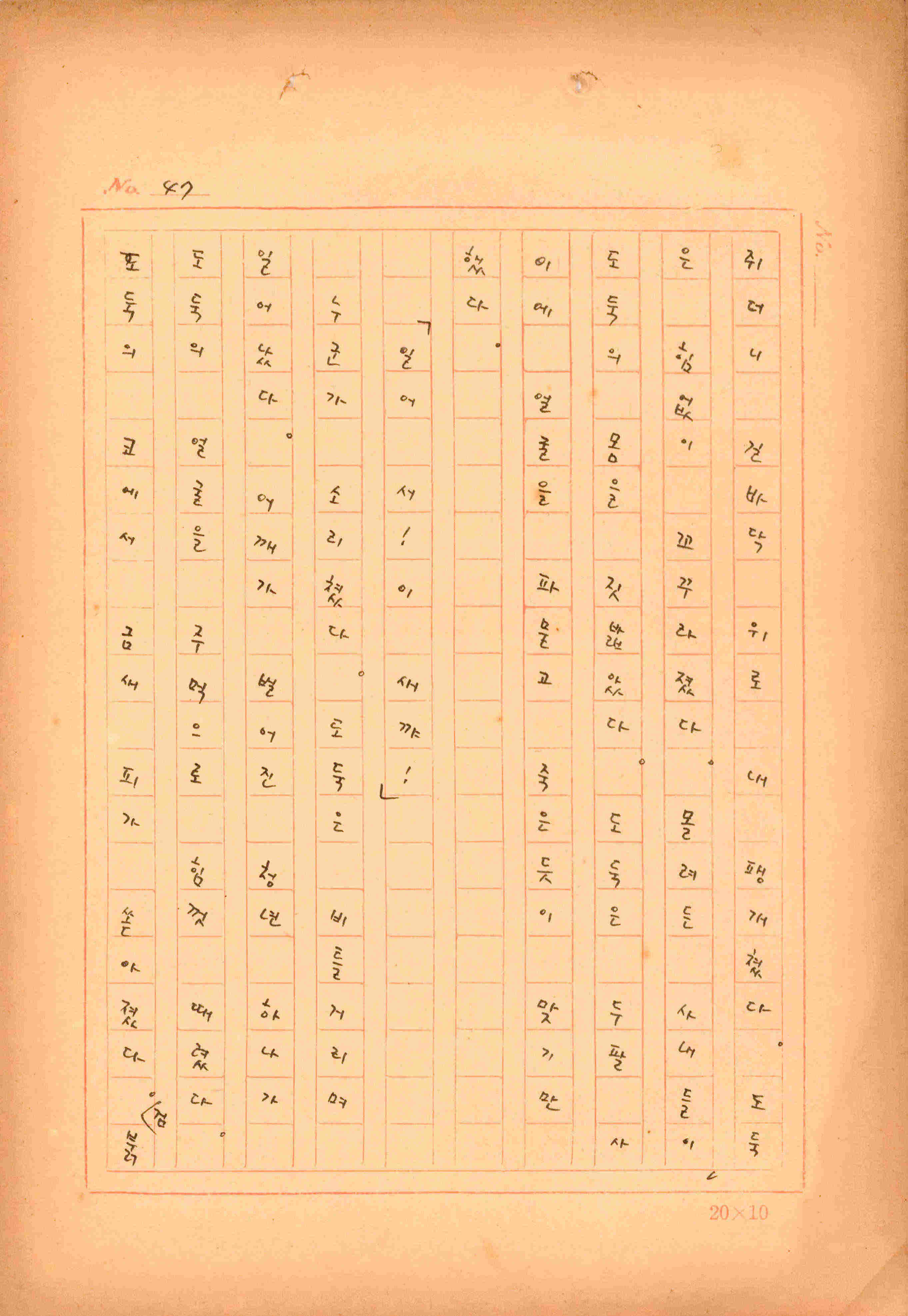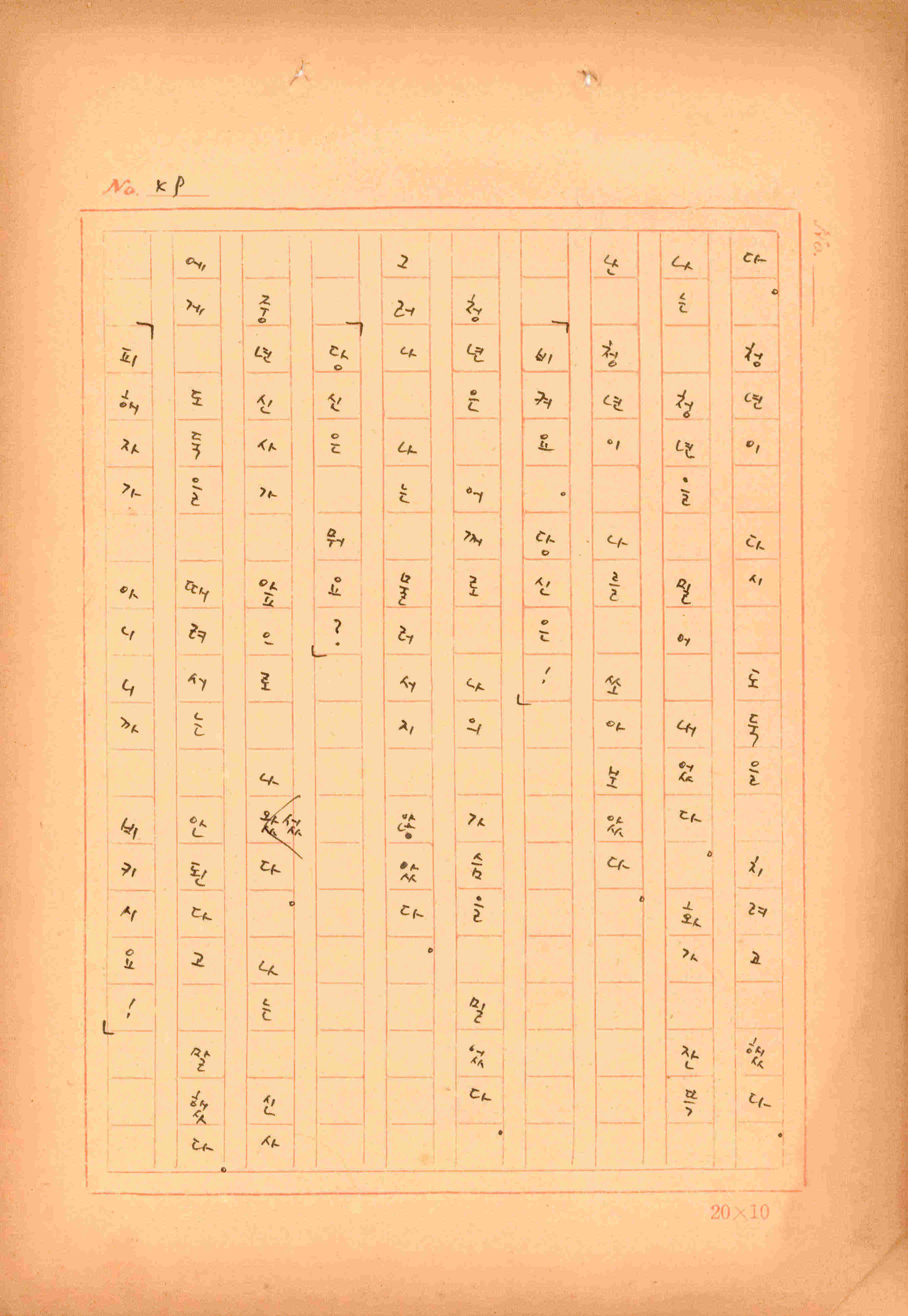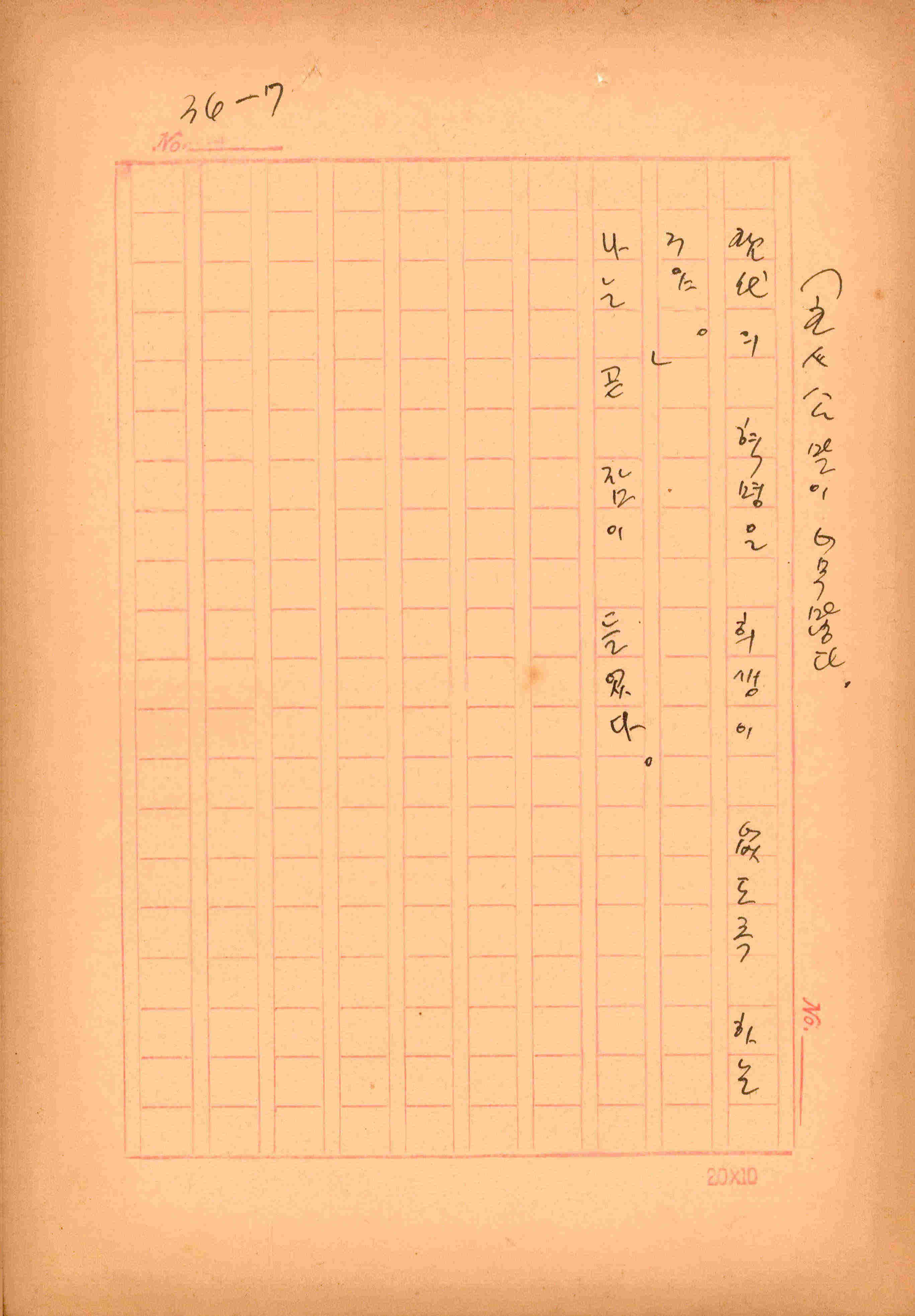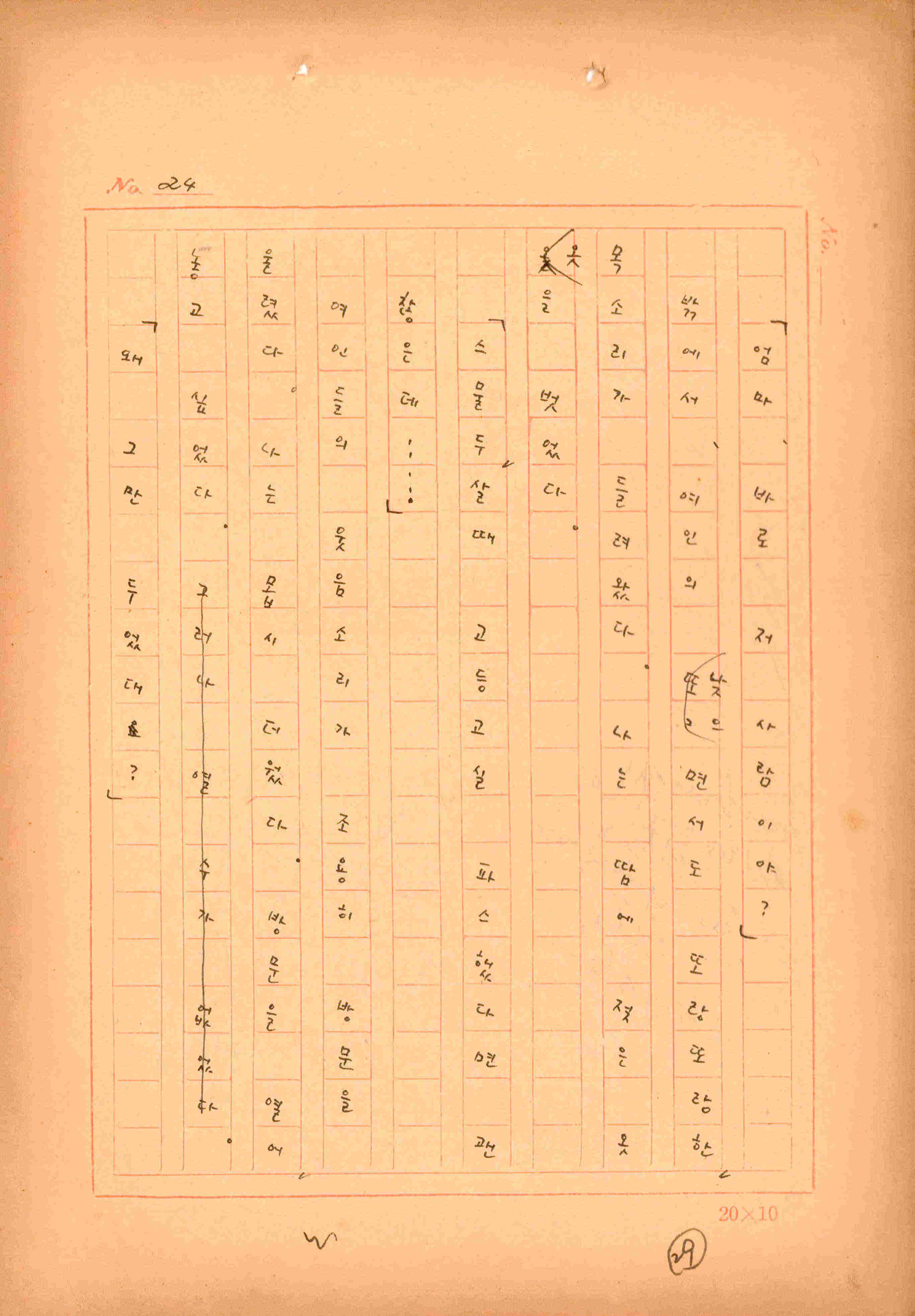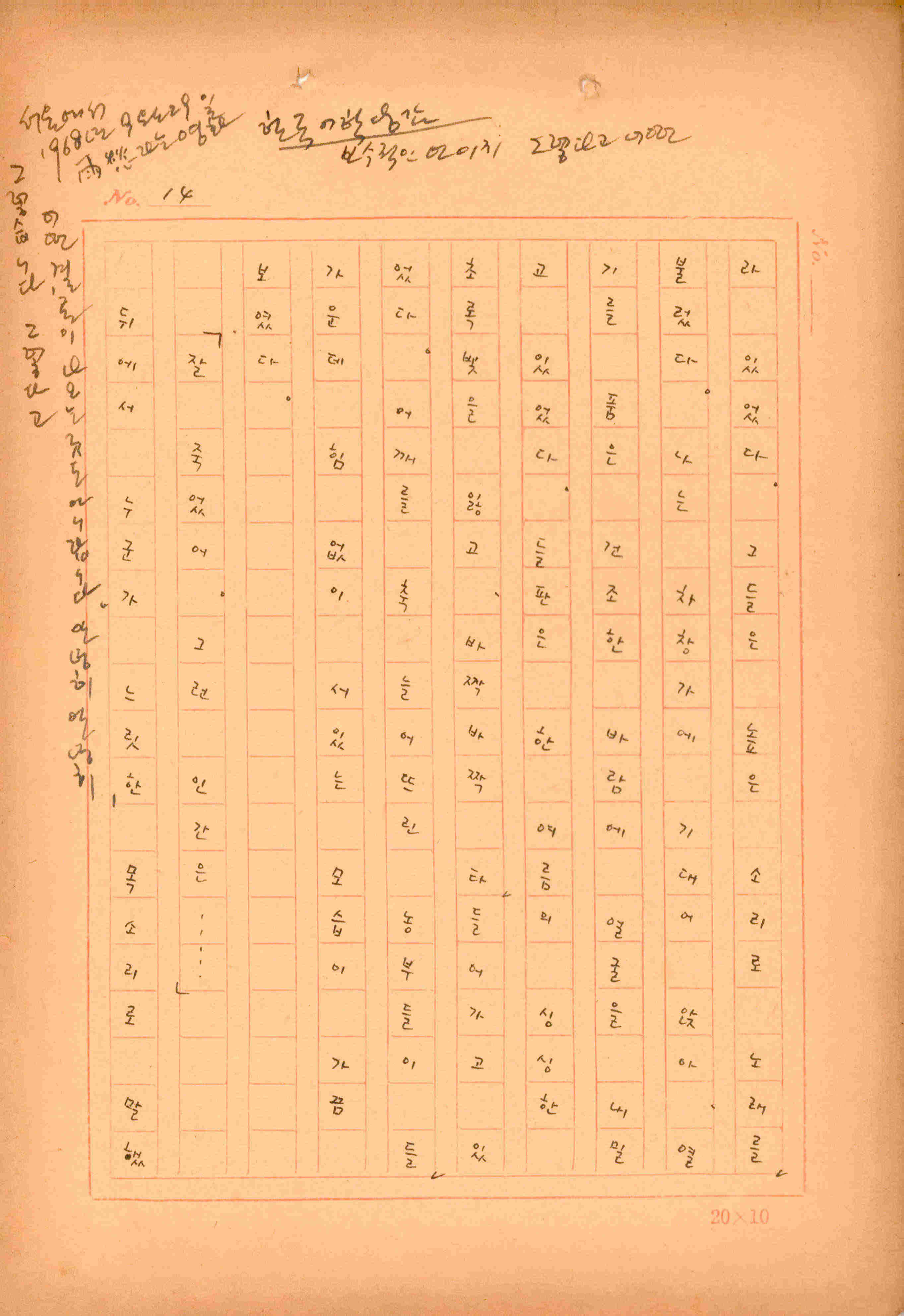 김성종의 미발표작 「일정표」 원고이다. 5장으로 구성된 단편소설이며 마지막 문장('…다 건너간 노인이 경찰서 OO')을 보면 미완성작으로 추정된다.