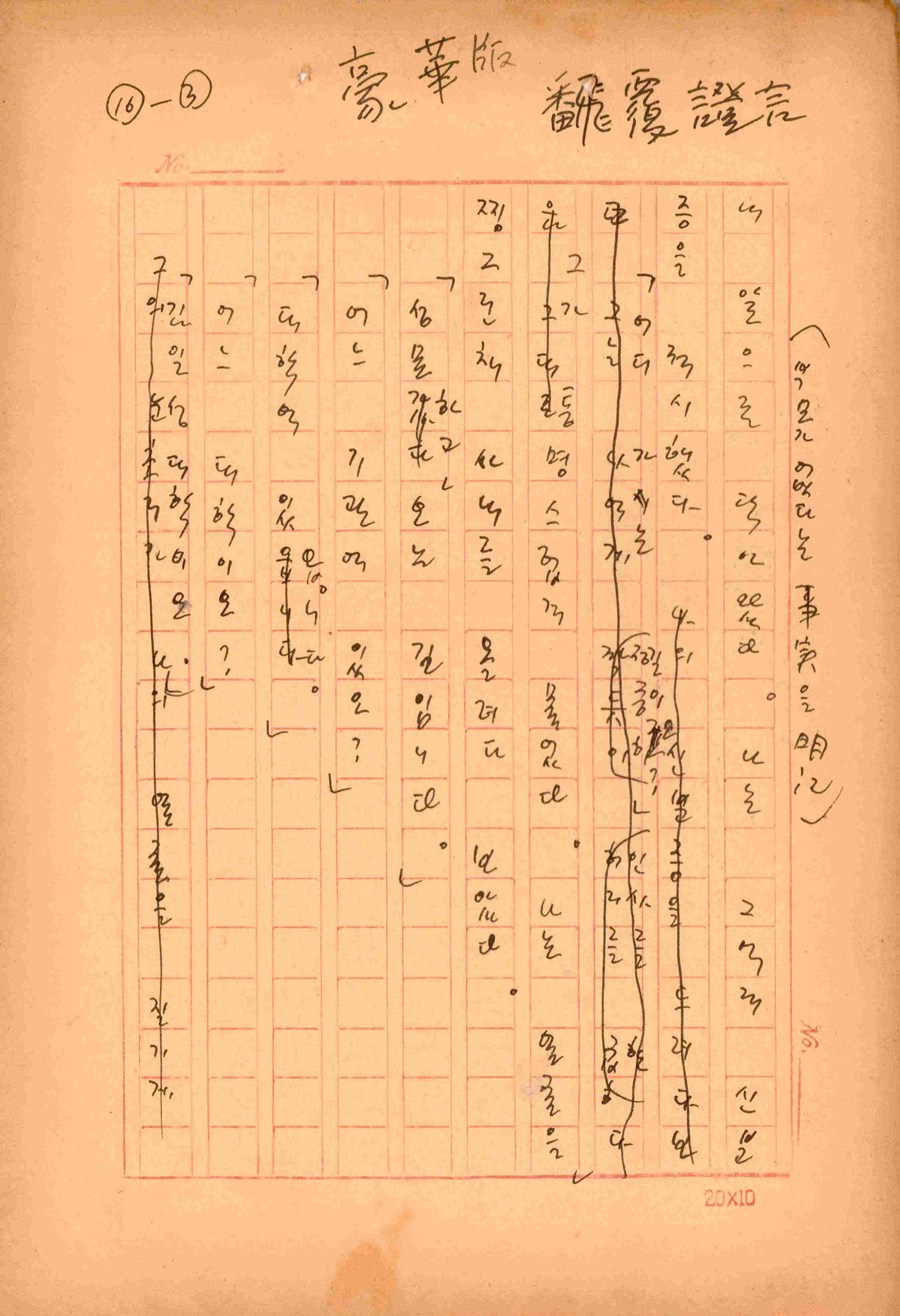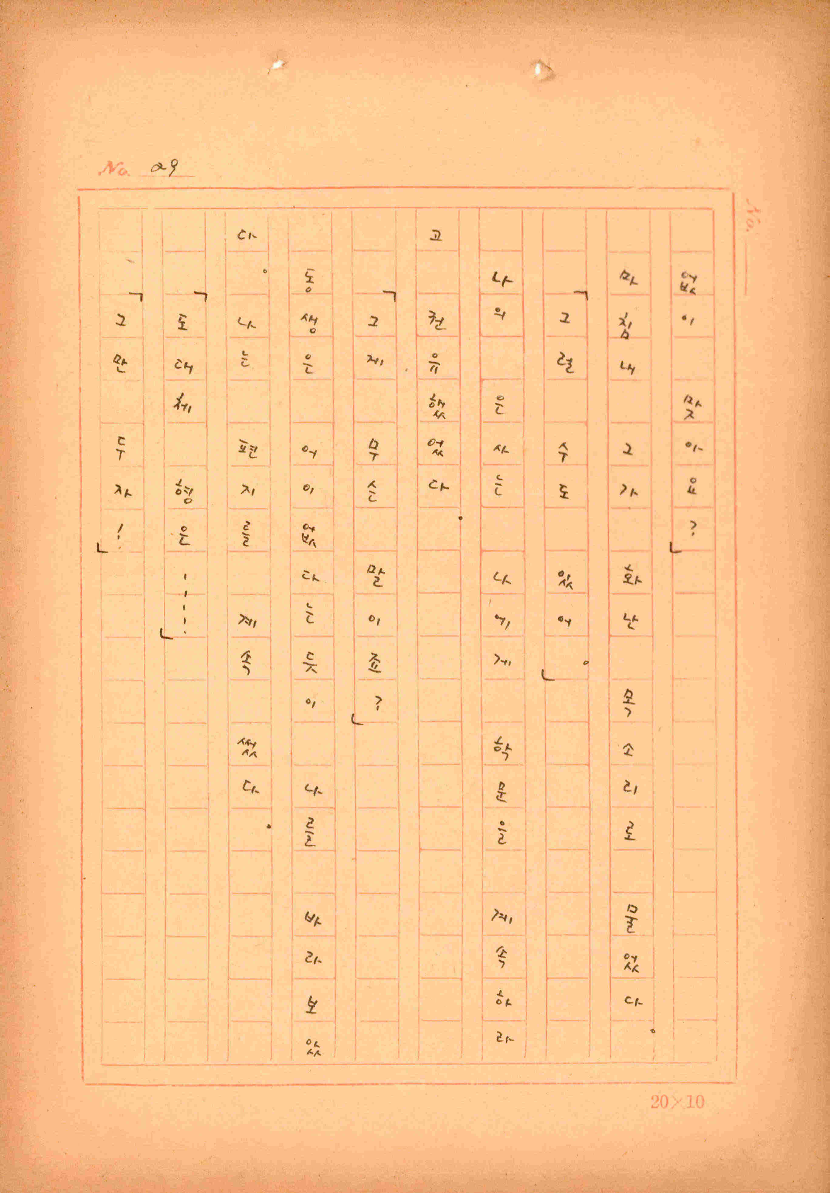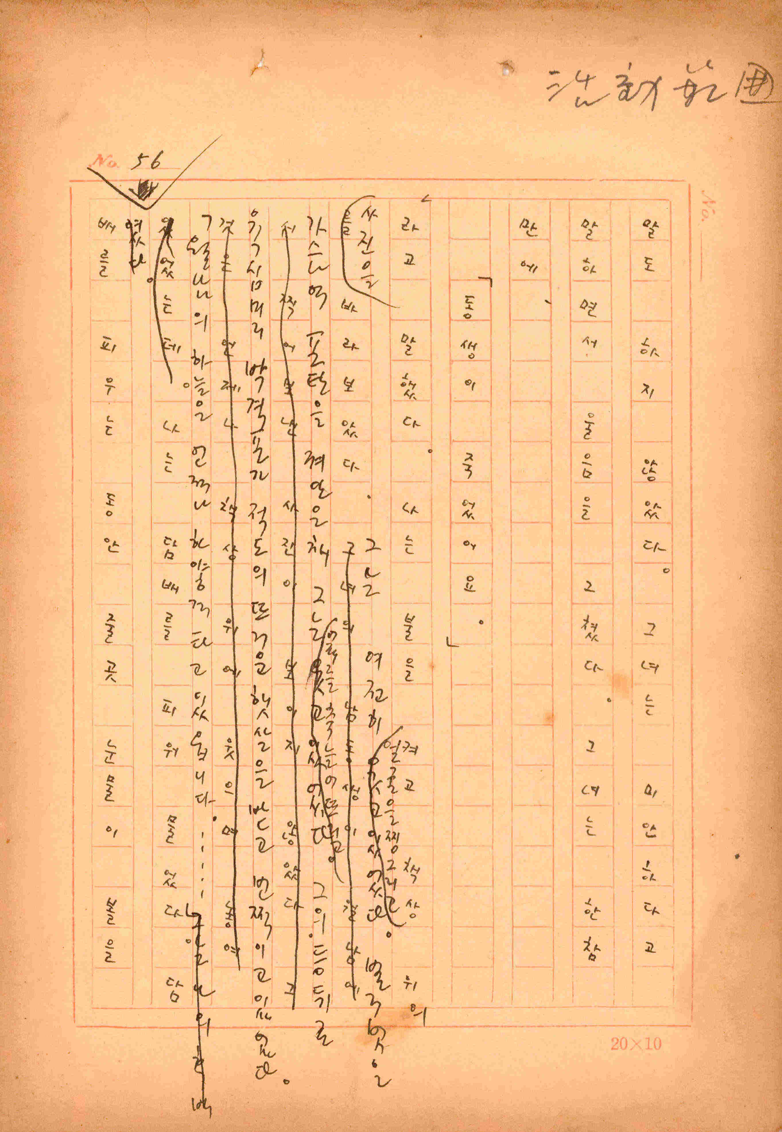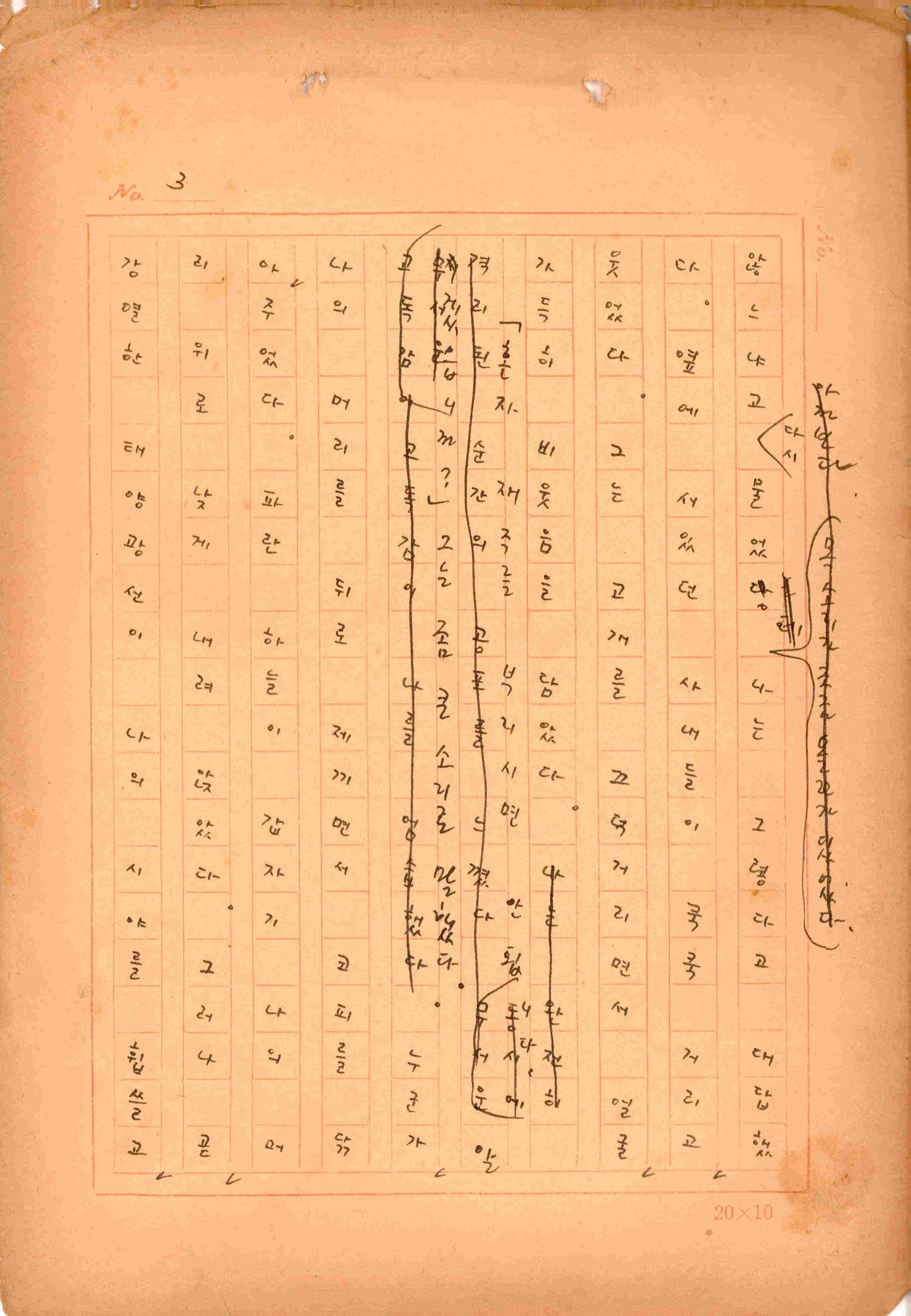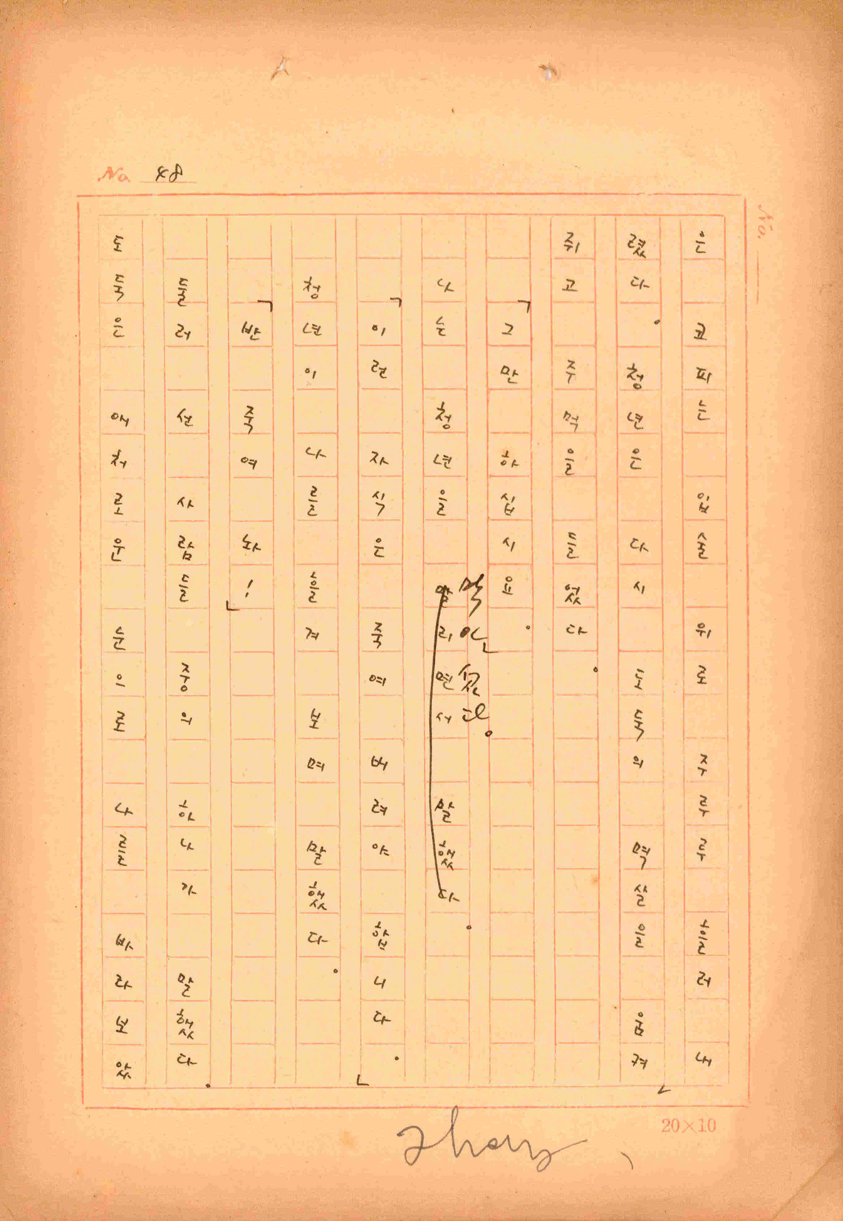 김성종의 미발표작 「일정표」 원고이다. 5장으로 구성된 단편소설이며 마지막 문장('…다 건너간 노인이 경찰서 OO')을 보면 미완성작으로 추정된다.