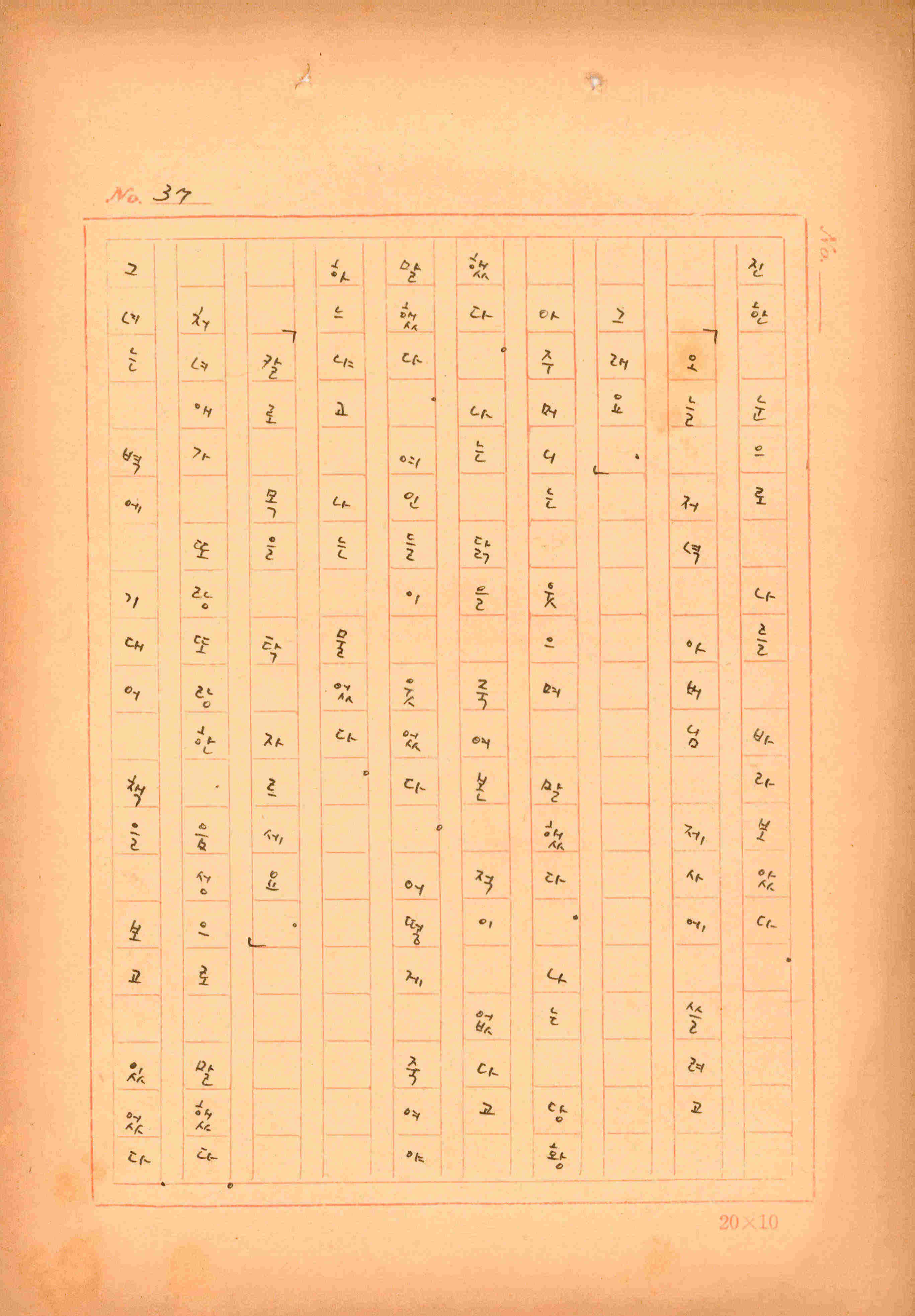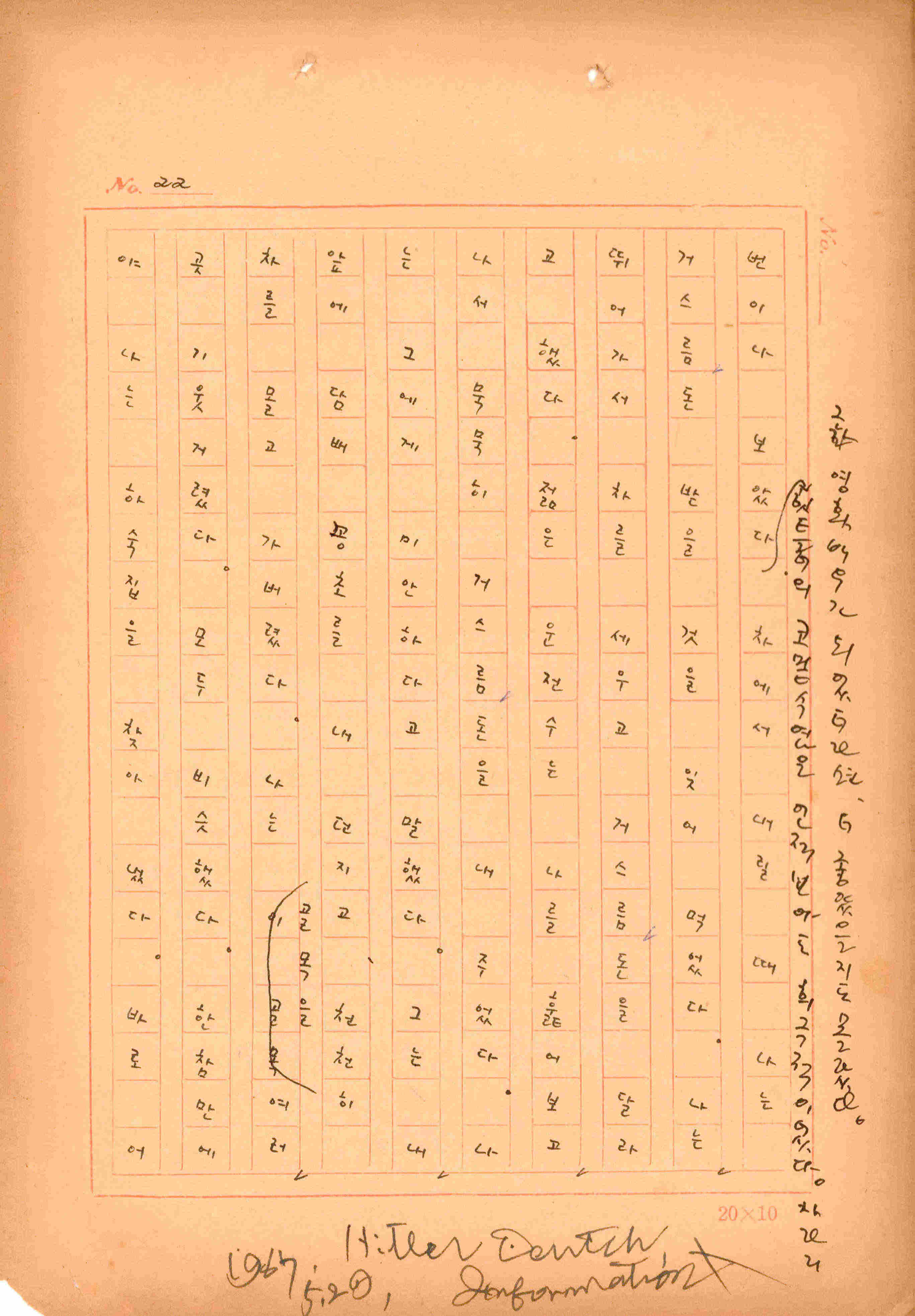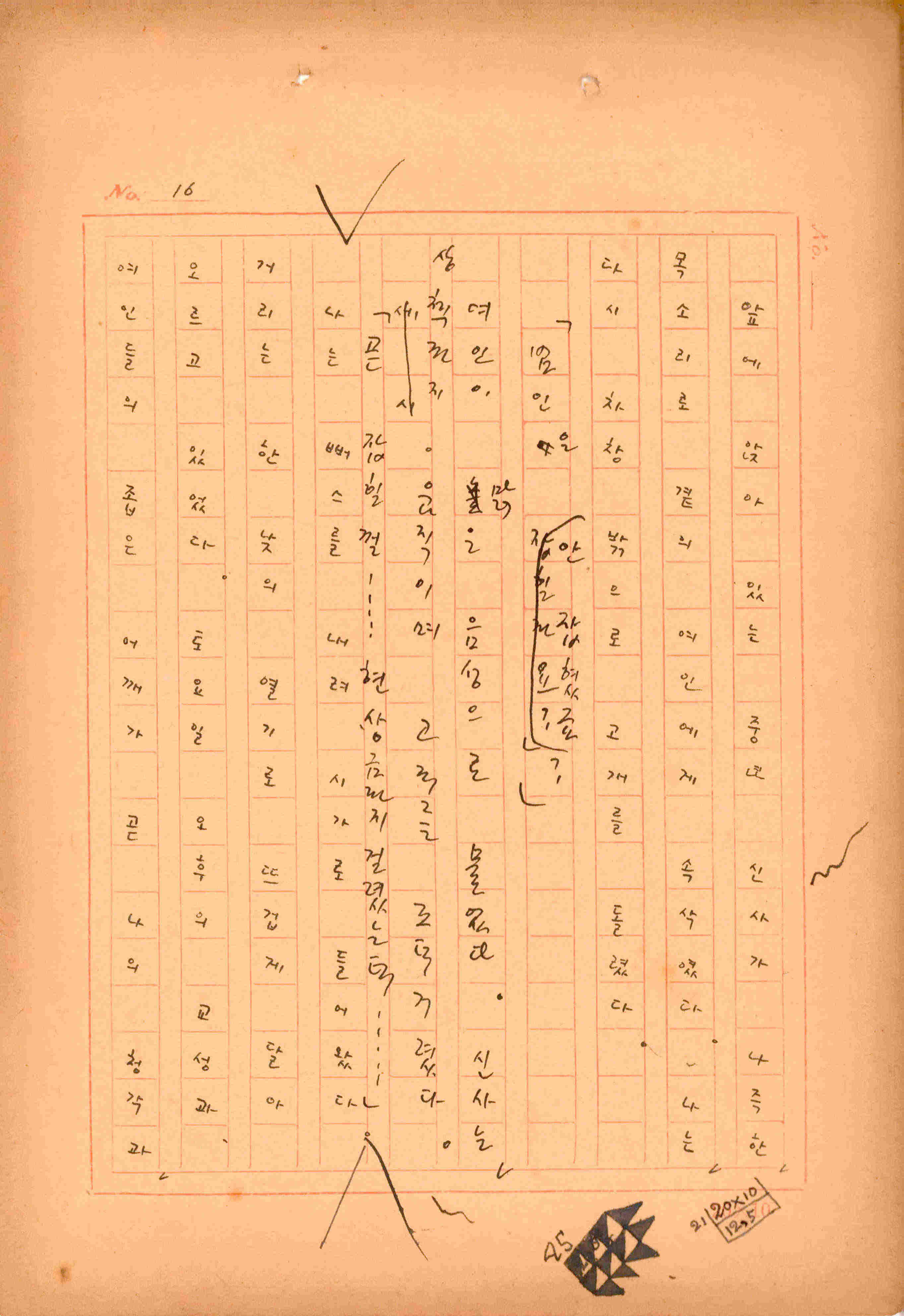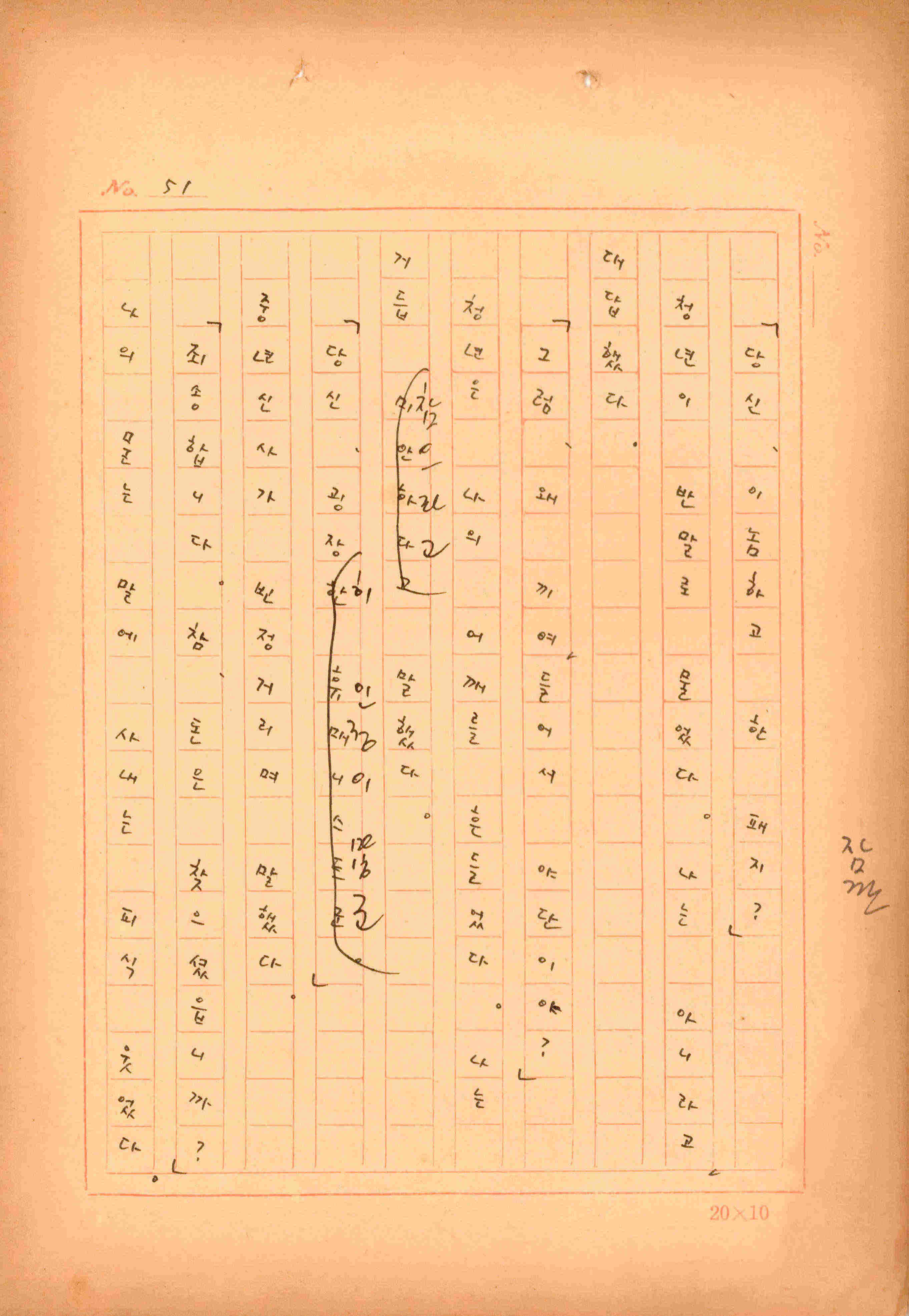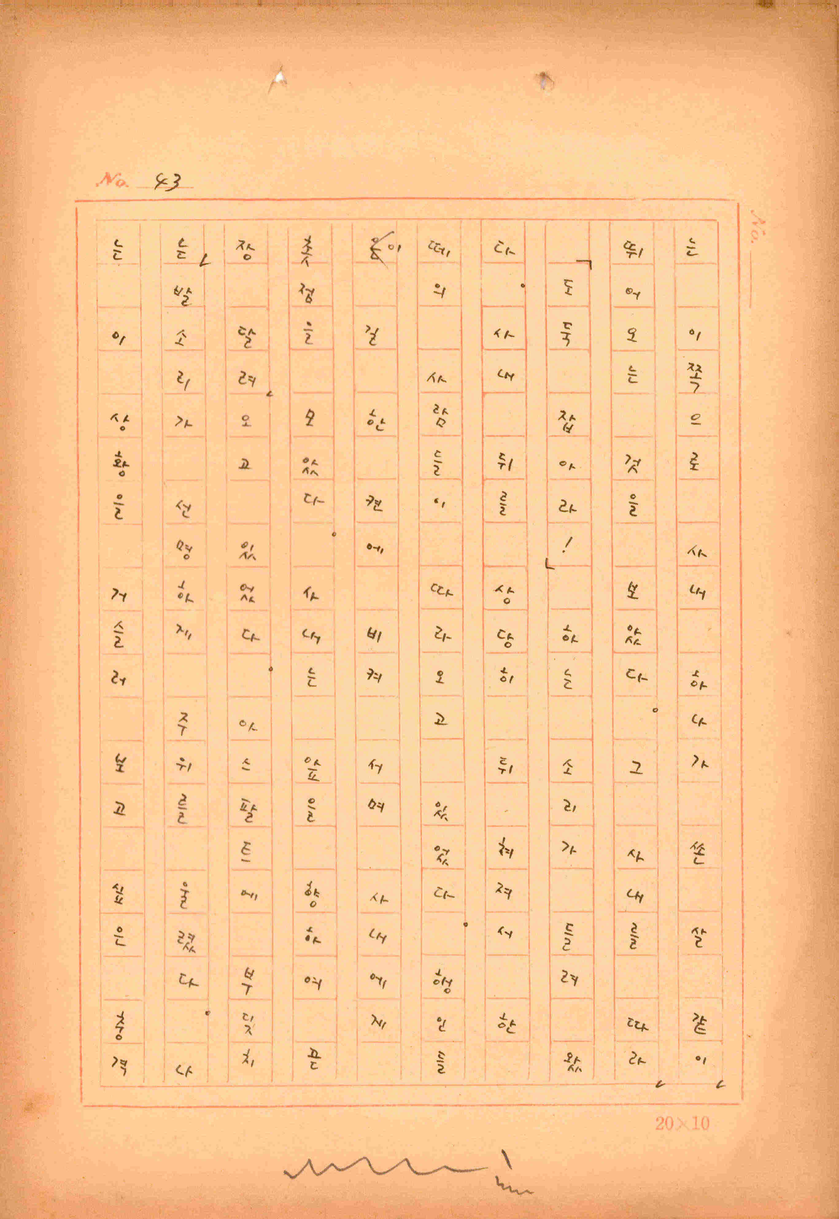 김성종의 미발표작 「일정표」 원고이다. 5장으로 구성된 단편소설이며 마지막 문장('…다 건너간 노인이 경찰서 OO')을 보면 미완성작으로 추정된다.
