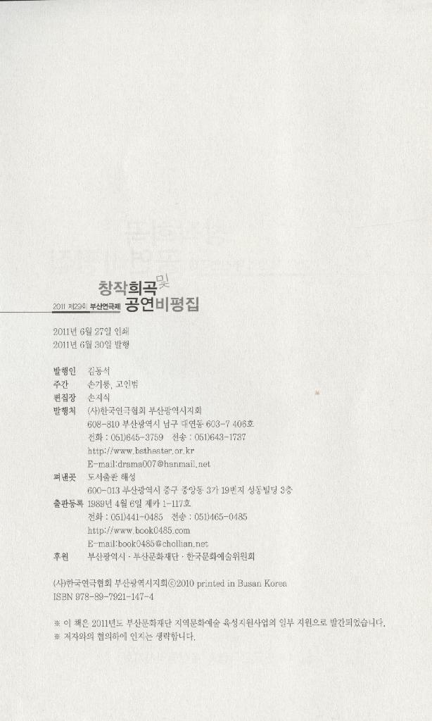 2011 제29회 창작희곡 및 공연비평집