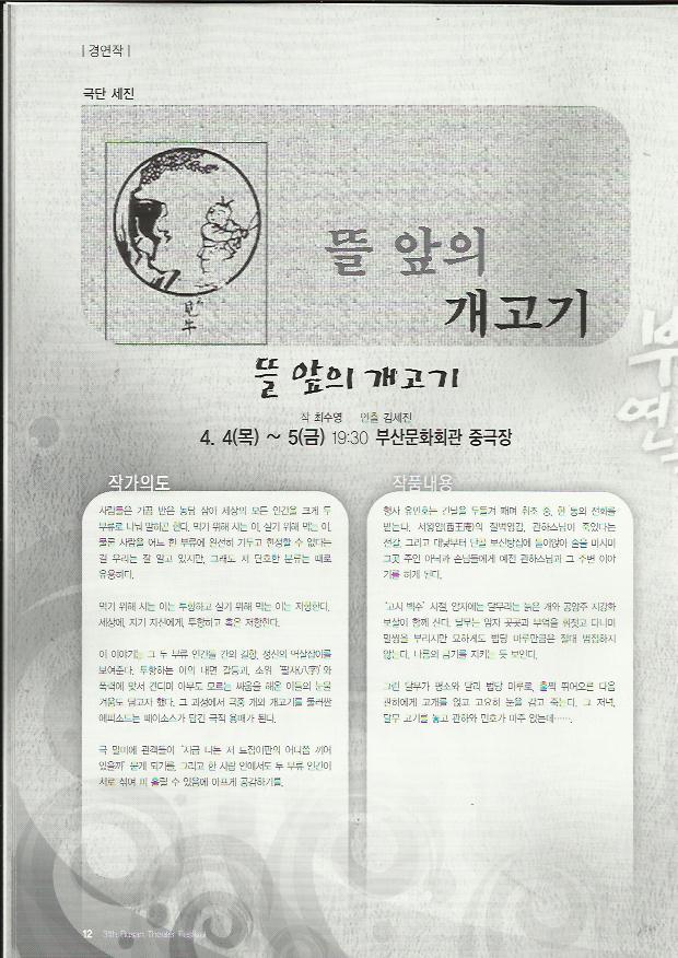 달무라는 늙은 개와 공양주 지강화 보살이 함께 산다. 달무는 암자 곳곳과 부엌을 휘젓고 다니며 말썽을 부리지만 묘하게도 법당 마루만큼은 절대 범접하지 않는다. 나름의 금기를 지키는 듯 보인다. 그런 달무가 평소와 달리 암자에 관하의 다라니 염송 소리가 울리던 날 아침에 법당 마루로, 훌쩍 뛰어오른다. 스님도 어서 오라며 손을 내민다. 달무는 관하에게 얼굴을 부빈 다음 그의 허벅지에 고개를 얹고 고요히 눈을 감고 죽는다. 그 저녁, 달무 고기를 한 뚝배기씩 놓고 마주 앉은 관하와 민호. 민호는 ‘이걸 왜 먹어야 되는지’ 따져 묻는다. 관하는 고기 한점 한점을 오래 씹어먹으며 장난인지 선문