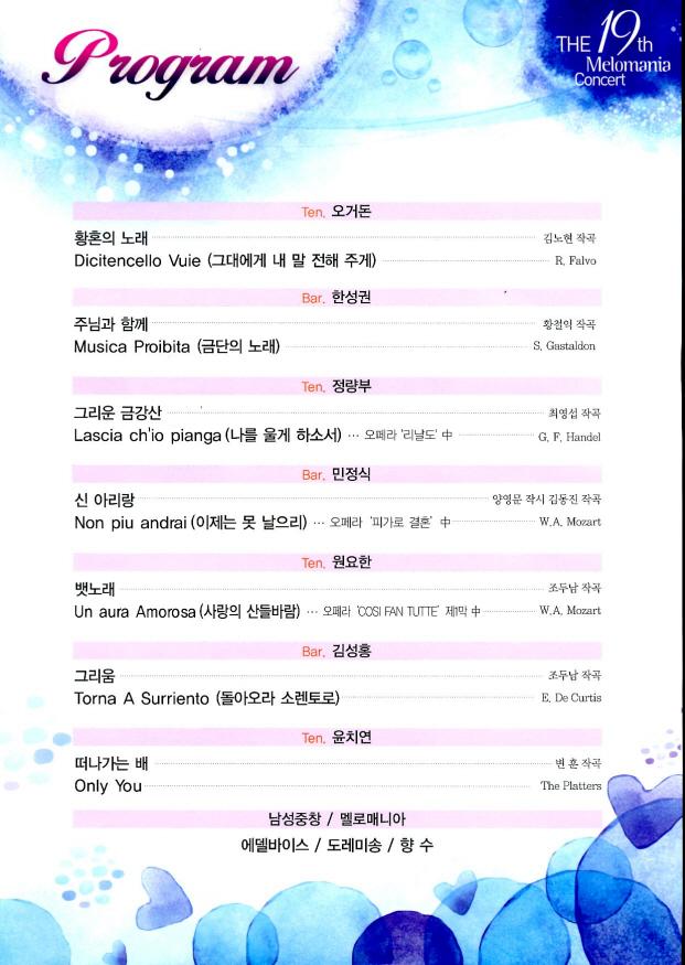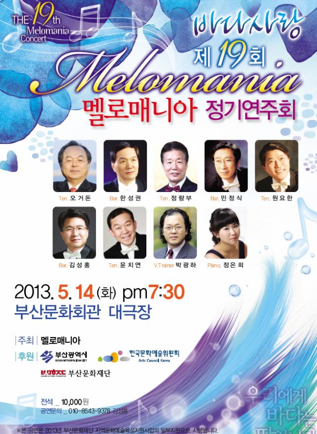 멜로매니아는 1994년 9월9일 오거돈(전 부산시장 대행)외 6명이 클라식(성악) 음악의 불모지에 성악예술활동을 통해 부산시민들의 관심과 보급에 주력코자 창단된 순수 아마추어 성악 동호회로 매년 부산문화회관 중극장 또는 대극장에서 정기연주회를 가져 국내외 클라식 음악을 보급 전파는 물론 회원들의 실력증진에 목적을 두고 창단 현재까지 이른 단체 임.