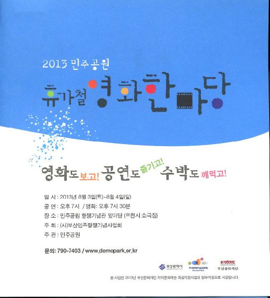 시민들의 휴식공간인 민주공원에서 여름 휴가철 기간 중 공원을 방문한 시민들이 가족들과 함께 즐거운 시간을 보내라는 목적으로 영화와 음악 콘서트 등의 문화공연을 함께 감상하는 한여름밤 영화잔치마당의 자리를 마련한다. 또한 2곳의 전시실과 연계한 다양한 컨텐츠의 전시물과 함께 복합문화공간으로서의 역할을 충분히 활용하여 시민과 함께하는 민주공원, 시민이 있는 민주공원이 될 수 있도록 하려는 것에 목적을 둔다.