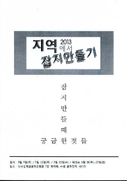 - 2011년 지역에서 잡지만들기 강좌와 의크숍을 통해 독립잡지를 만들려고 하는 다양한 요구들을 확인했다