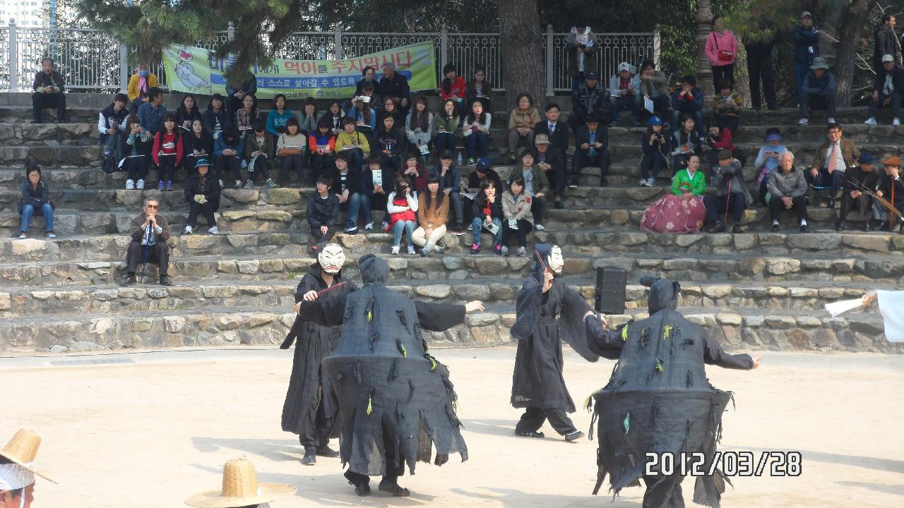 3~4시간동안 기가 진하도록 난무하여 흥이 하강할 때 쯤 후편인 탈놀음이 시작된다.